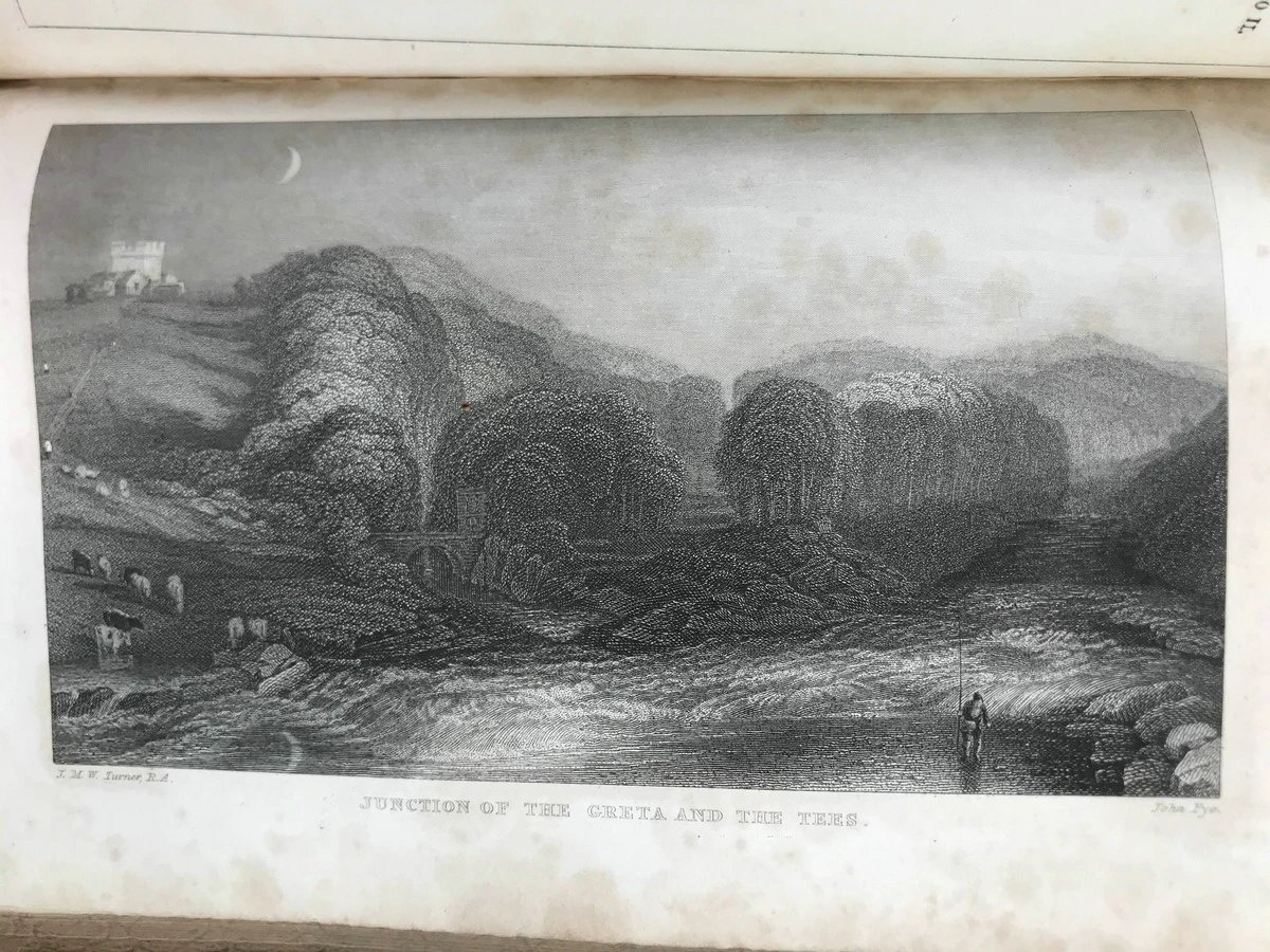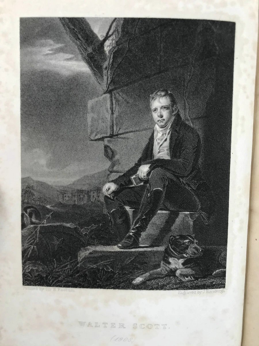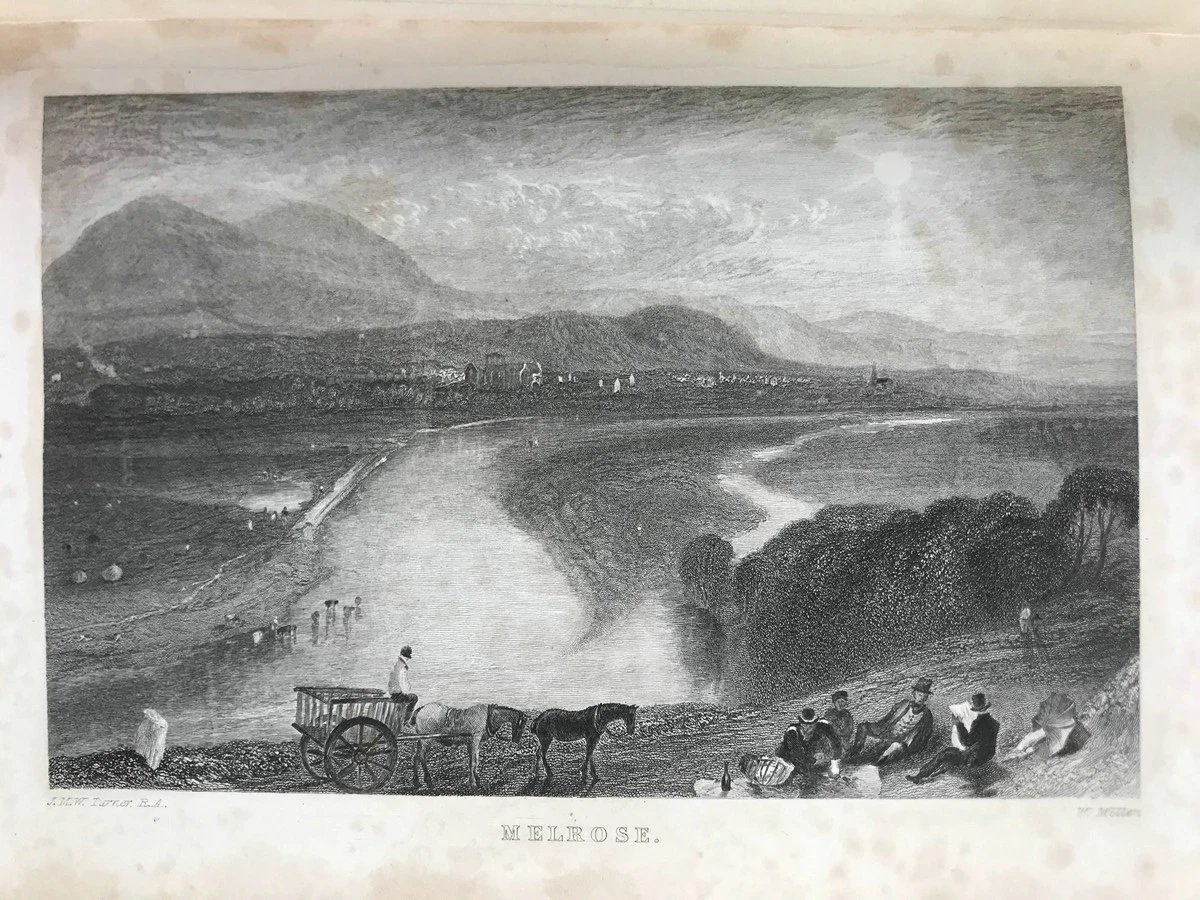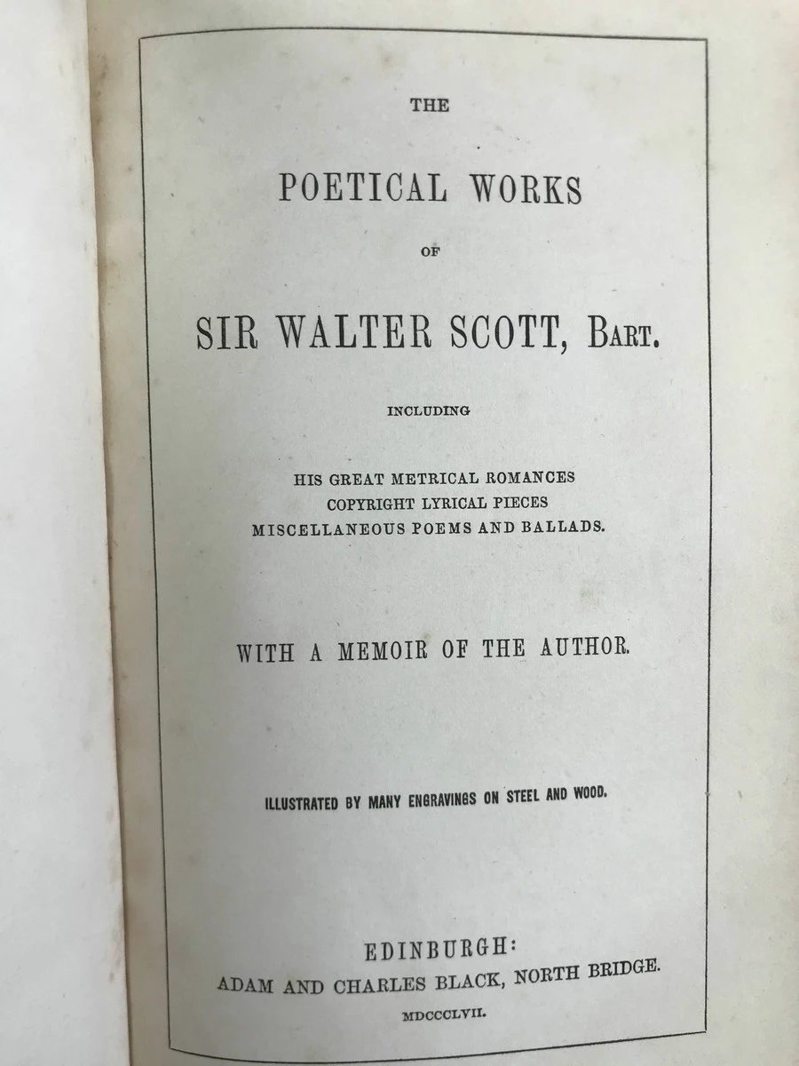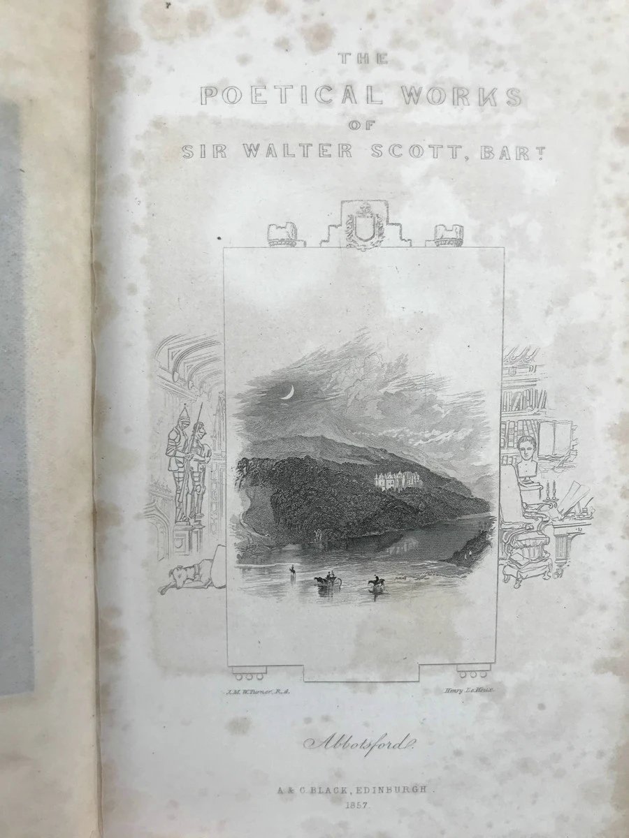 书口烫金雕刻纹饰!1857年 司各特诗集 配多幅钢板与木版画插图 全真皮精装32开