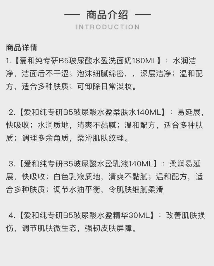 爱和纯B5玻尿酸补水保湿舒缓水乳洁面精华套装