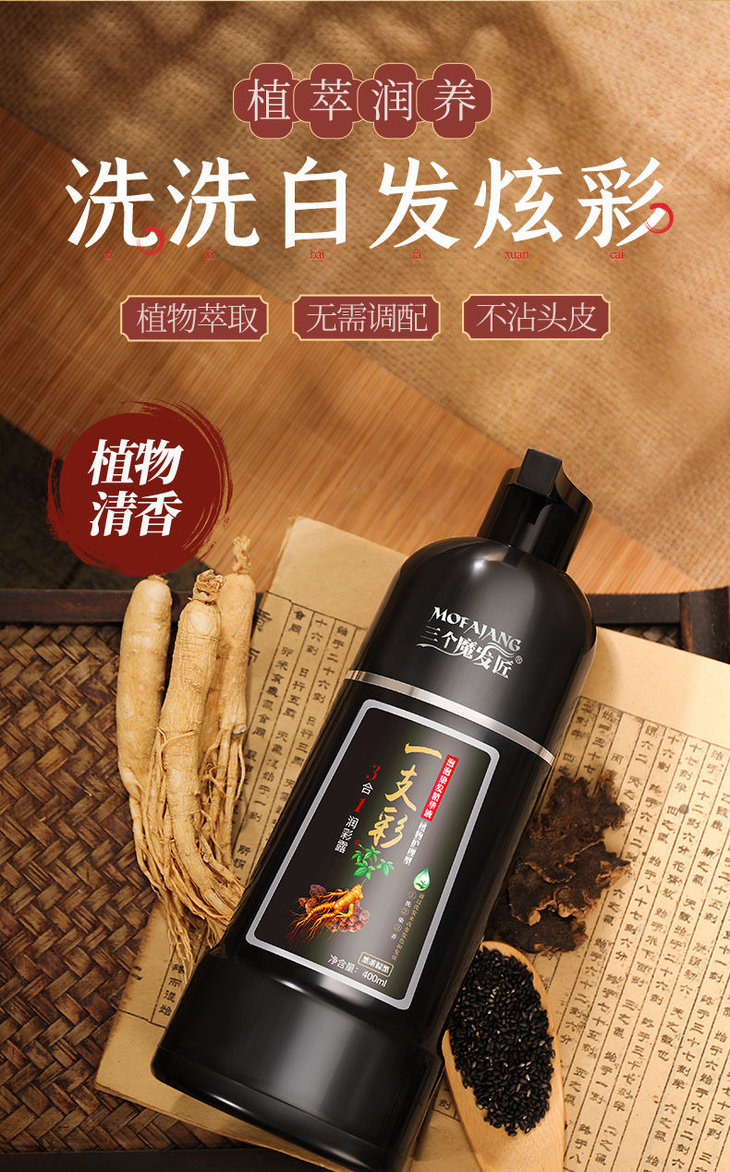 ✅ “6大草本+植物染”,温和到“像给头发敷面膜” 担心染发剂“化学成分伤头皮”?这款用的是人参、无患子、侧柏叶 等6大草本提取物,植物护理型配方,温和不刺激~ 染的时候没刺鼻气味,头皮不痒、不红,连敏感肌都能放心用,给头发“染黑”的同时还能“养发”,一举两得❤