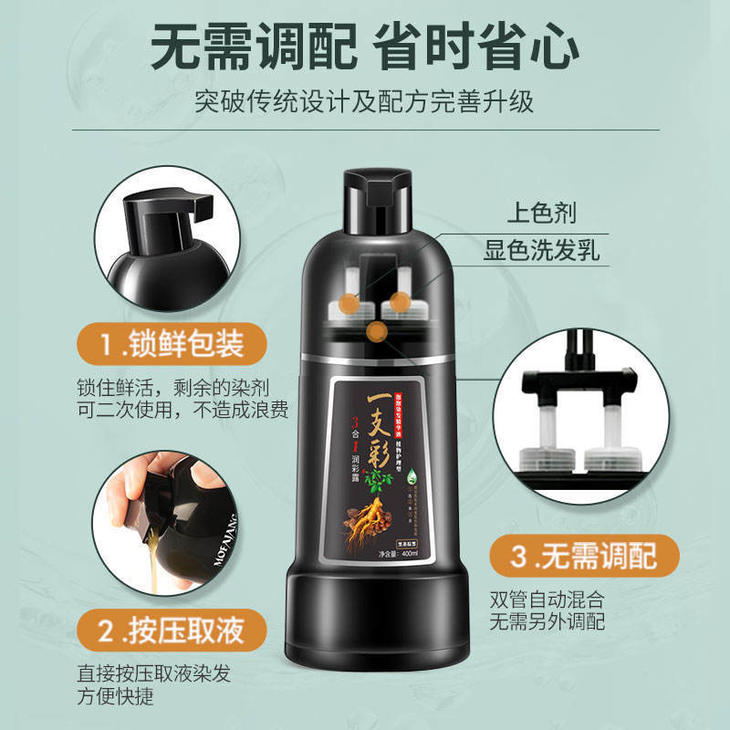 这款黑发露的使用方法超级简单 不用像传统染发剂那样繁琐地调配 直接挤出来就能用,就跟用洗发水一样,在头发上搓出泡泡 尤其是白发多的地方,多揉一会儿,轻轻松松就能上手 爸爸妈妈染发再也不用愁麻烦了~ 而且它的泡沫很细腻,只会染头发,不会沾到头皮 洗完之后头皮干干净净,也不用担心顶着黑额头出门啦😜