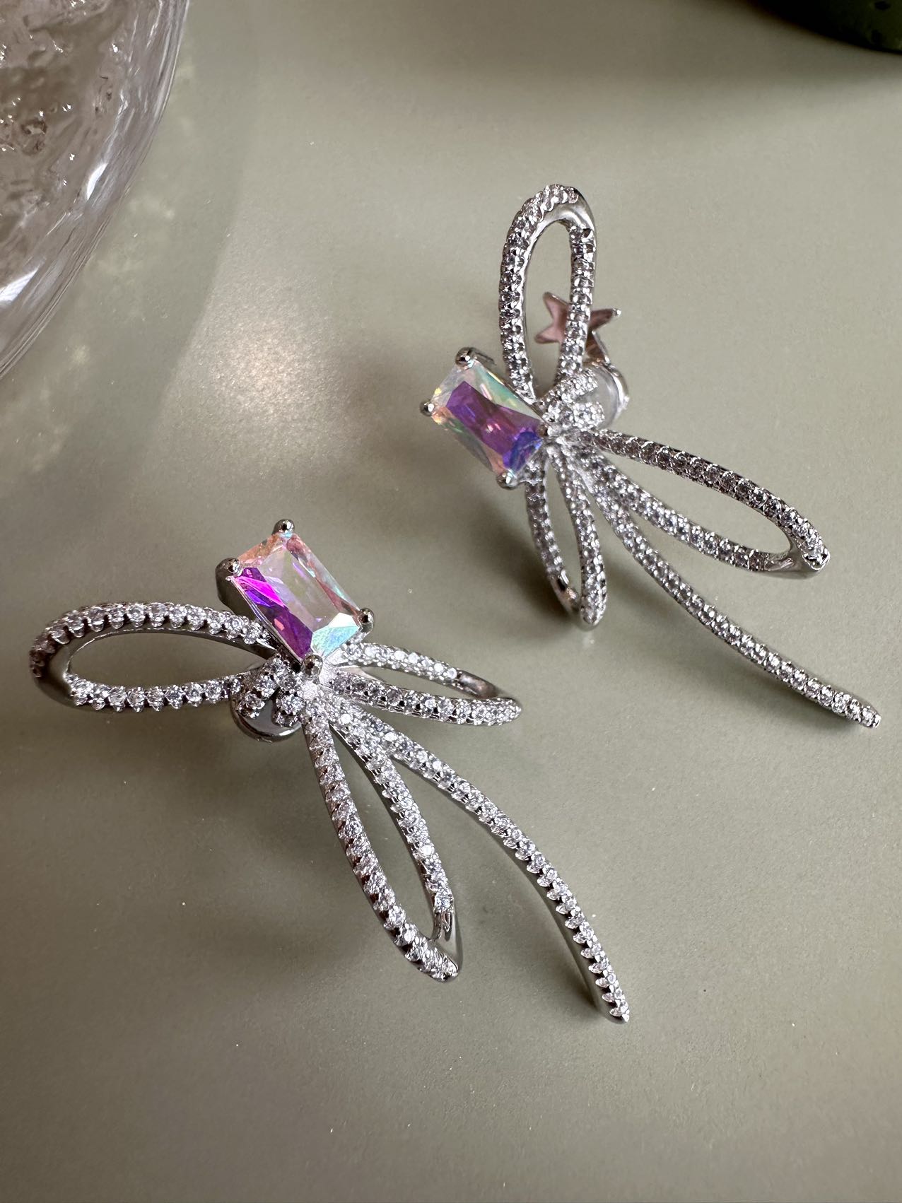 极光蝴蝶结耳环
