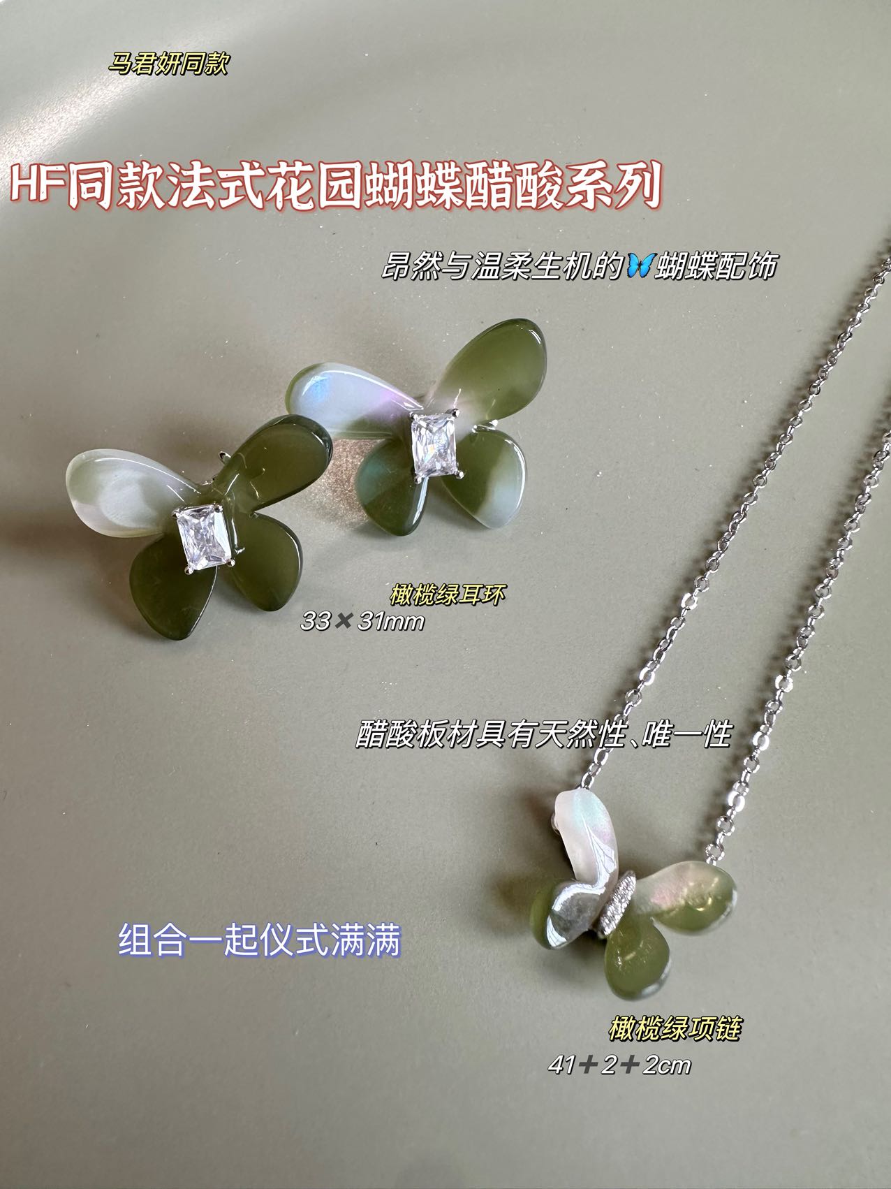 蝴蝶方糖耳环、蝴蝶锁骨链