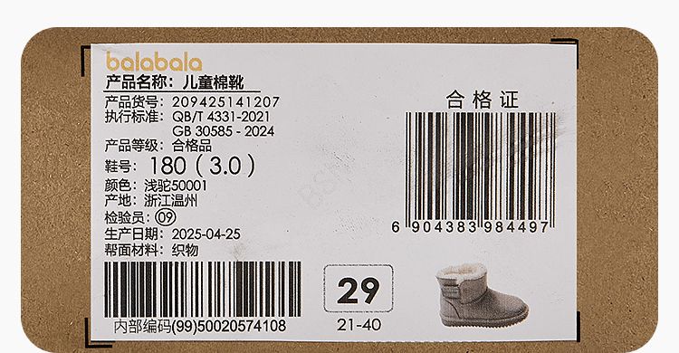 巴拉巴拉童鞋儿童雪地靴男女童短靴加厚加绒棉靴防滑2025新冬靴子
