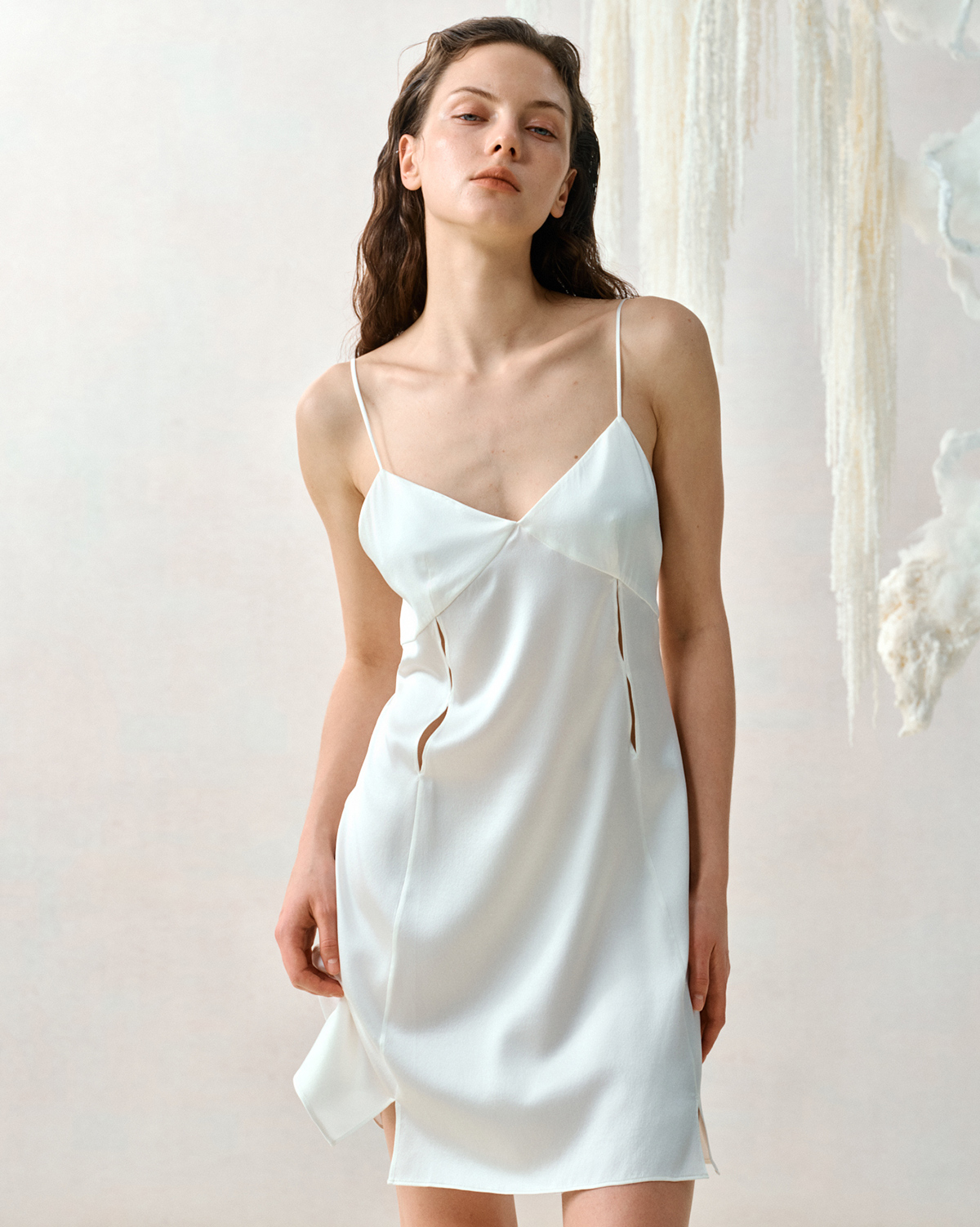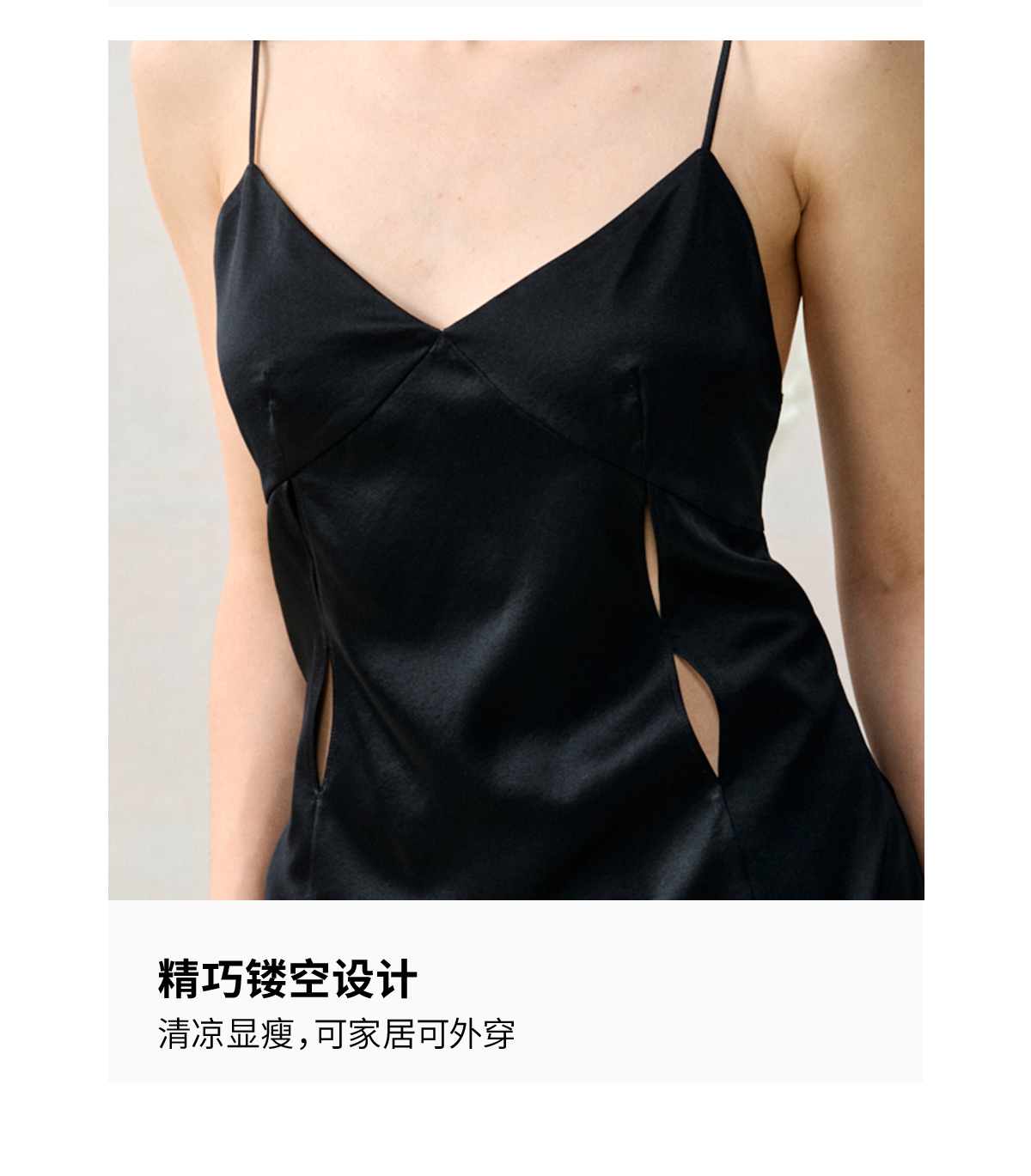 里性 LIVARY MIO 玲珑 性感真丝吊带连衣睡裙镂空开叉睡衣家居服