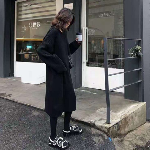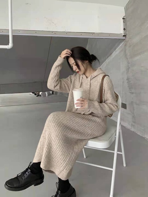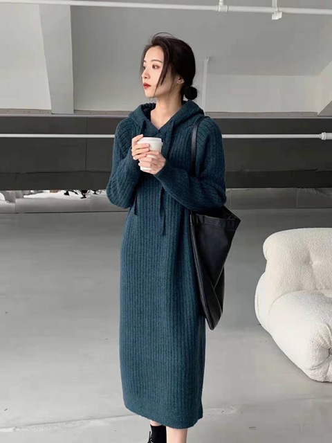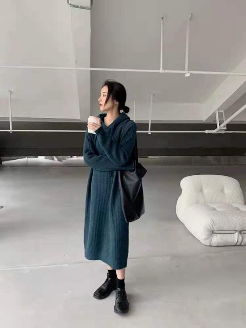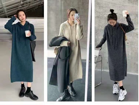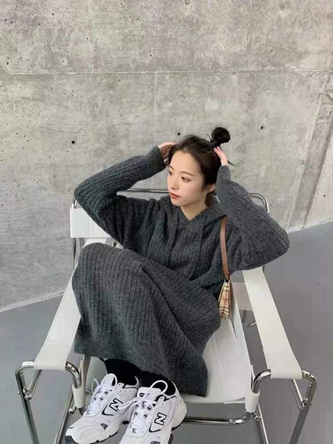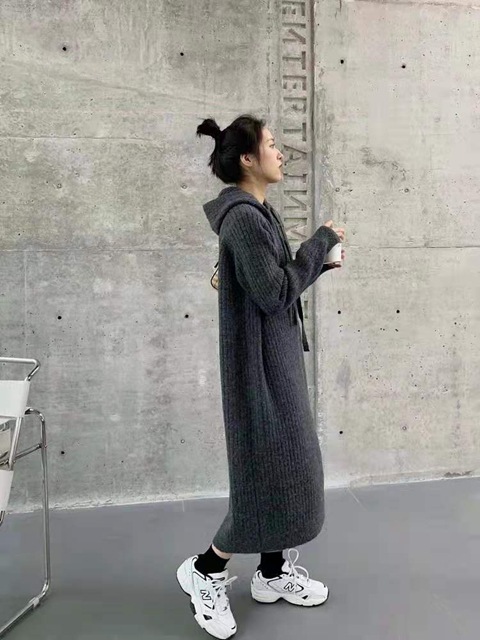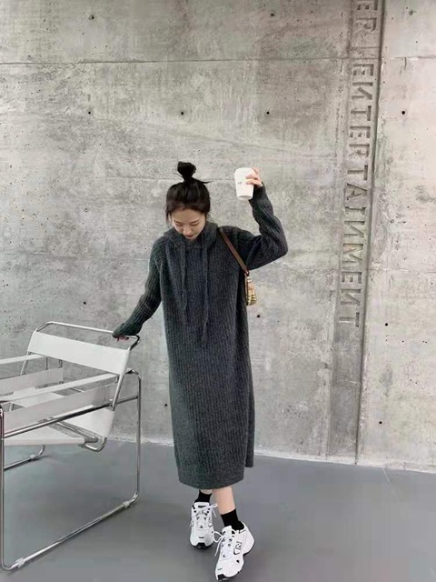 【YW】无忧购【甄选】连帽秋冬宽松慵懒风显瘦中长款过膝盖针织裙1414(截单后7天发货)
