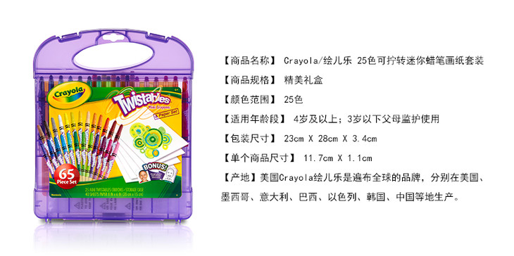 绘儿乐 Crayola 25色可拧转蜡笔礼盒套装 CYLC04-2705 适用年龄3Y-6Y