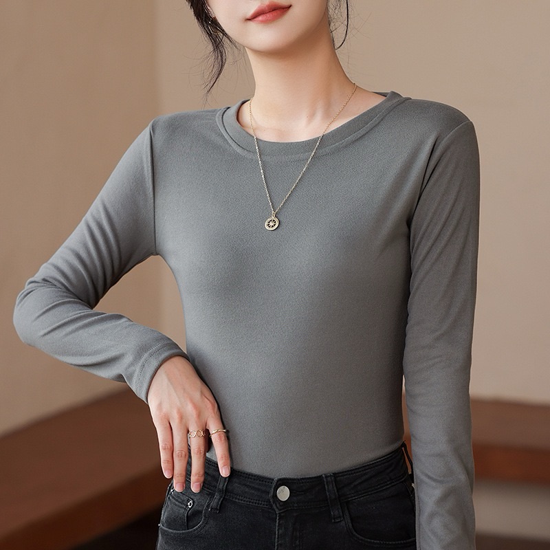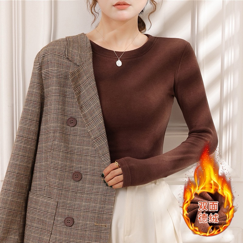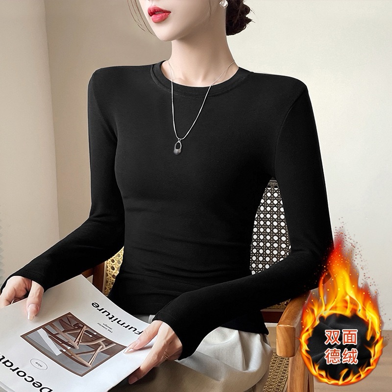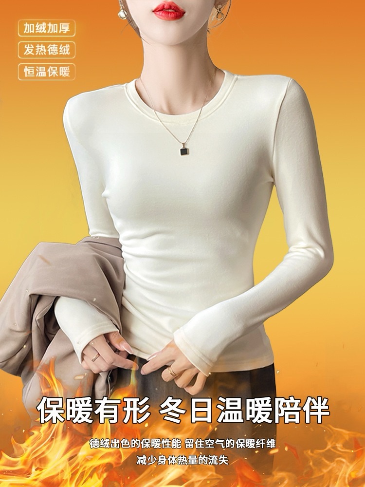 德绒圆领加绒加厚修身螺纹针织长袖打底衫167895934(3-5天发货)