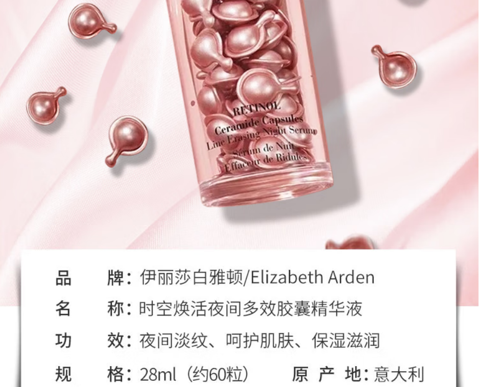 临期特惠 Elizabeth Arden伊丽莎白雅顿粉胶多效精华液 90粒/瓶【exp2024.9~11非质量问题不退换】