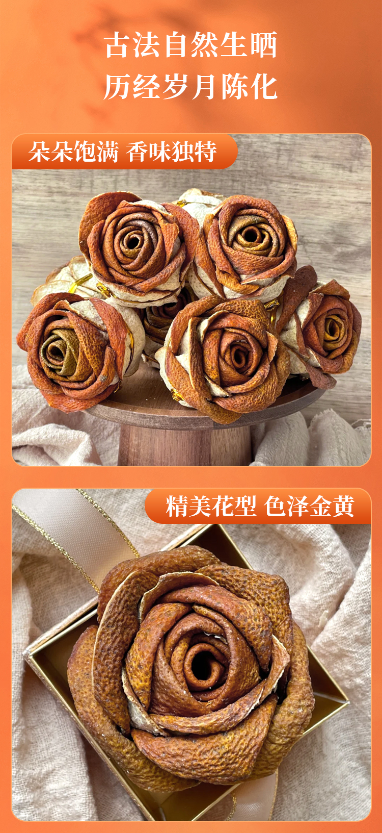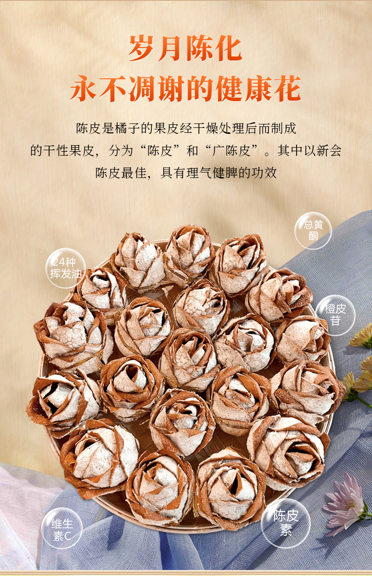 【新会陈皮玫瑰花礼盒】正宗新会生晒陈皮250g