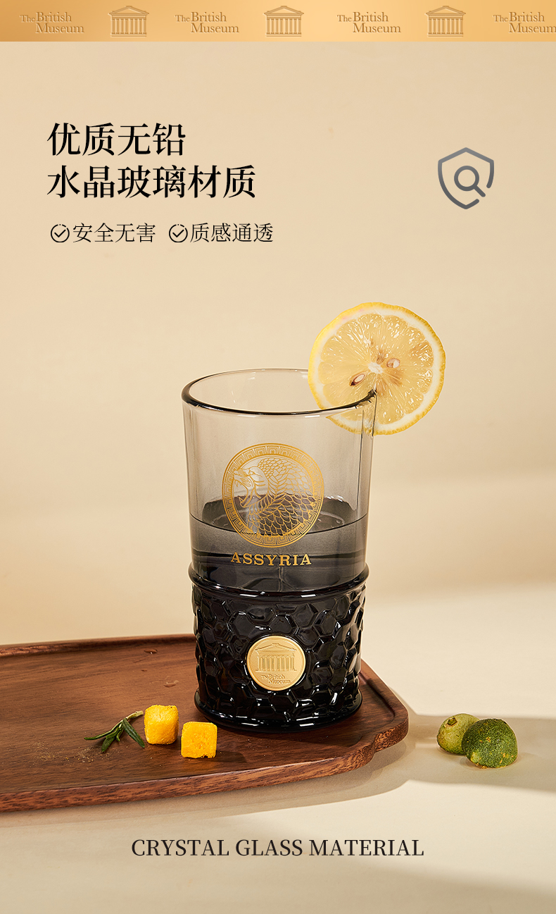 大英博物馆亚述狮子渐变浮雕铭牌玻璃杯喝水杯饮料杯