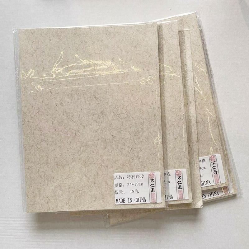 薛继业老师画的水墨小画大部分都是定制的这种宣卡,宣卡自古就有,是将宣纸预先裱在厚卡纸上,单宣的墨色要托裱以后才能看得出层次,宣卡的墨迹干透就能准确的反应墨色,而且宣卡表面平整好画,特别适合水墨初学者和小朋友学画画用,因为不用托裱马上就能知道墨色轻重,很快就能掌握水墨的浓淡关系,这批不仁斋宣卡都是用薛继业老师自用的同样的宣纸制作,泥金卡特别适合书写小楷,比宣纸更流畅,每张宣卡都背面都手工盖有不仁斋的四款印章,单塑料封套,画好后装回去可以长久保存,宣卡硬挺不像单宣那么容易破损,方便保存或馈赠亲友。家里有小朋友的可以选择白宣卡,小孩子画画无所谓好坏,让他们随便画些东西留下来,多年后再看会非常有趣。新品薛继业巴掌钟馗专用麻纸半生熟软宣卡,十八张一袋,尺寸24x18厘米 购买满10件包邮(可组合不同款式)薛继业老师用这种纸画的水墨原作,尺寸相同