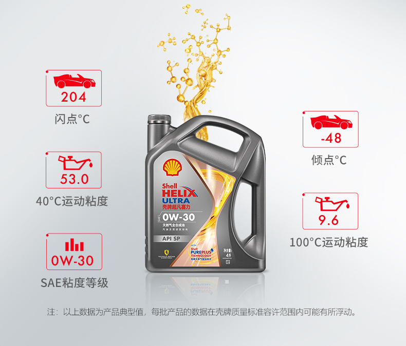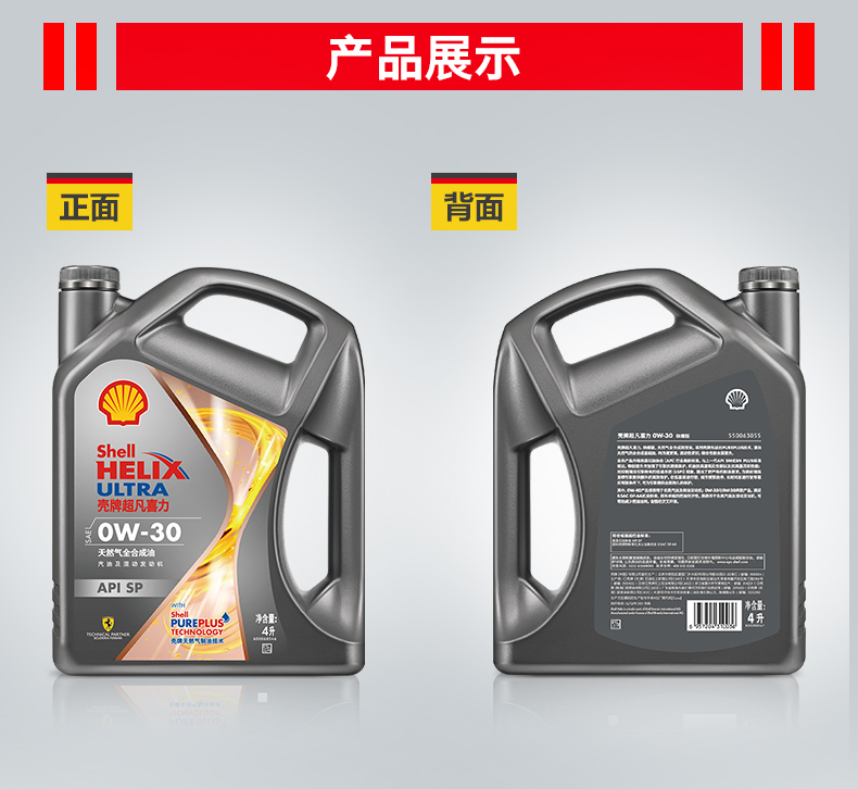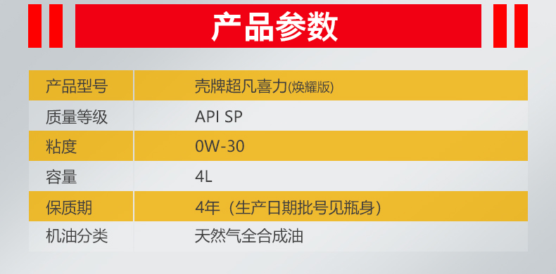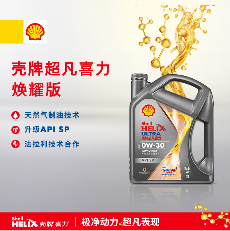 壳牌(Shell)超凡喜力焕耀版0W-30 SP级 4L 全合成油汽车机油
