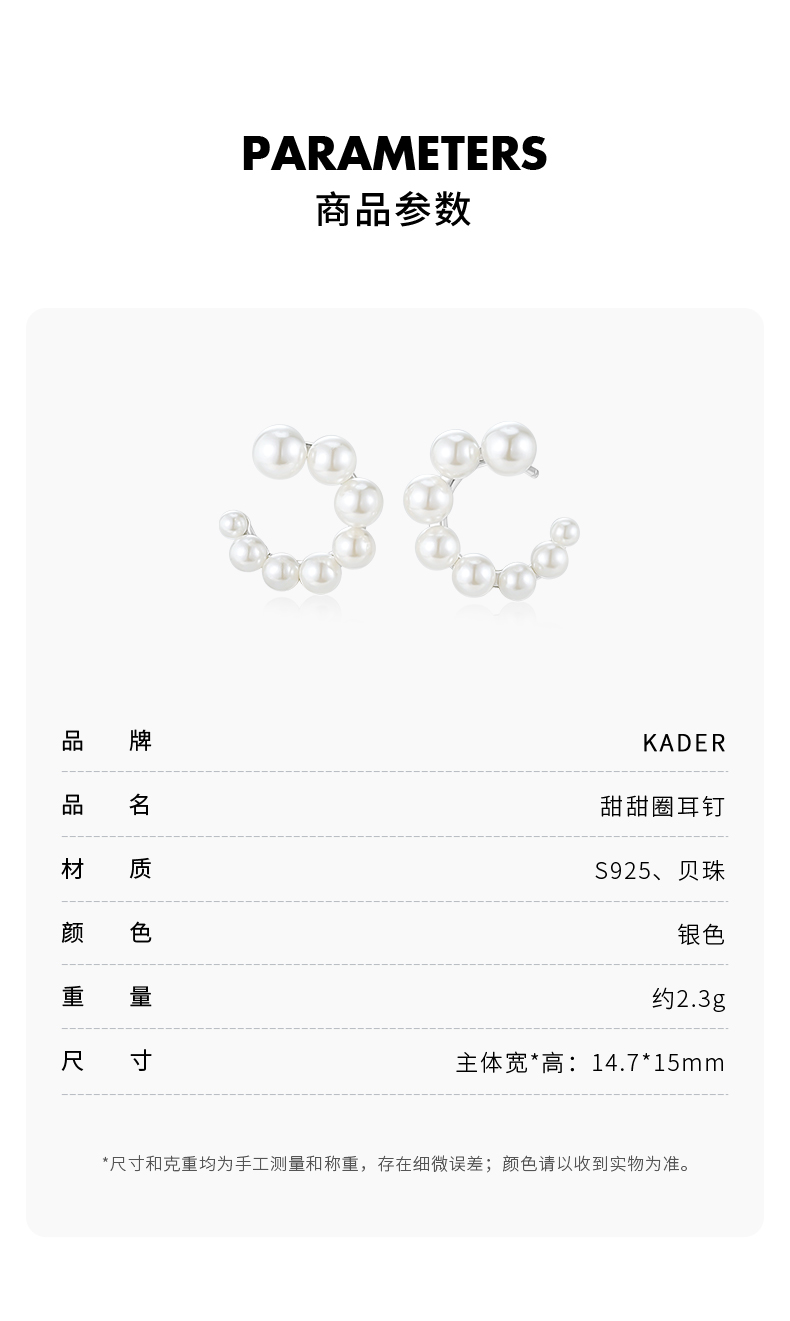 KADER卡蒂罗 甜甜圈 人造珍珠耳钉女生925银耳饰小众设计感2023新款爆款