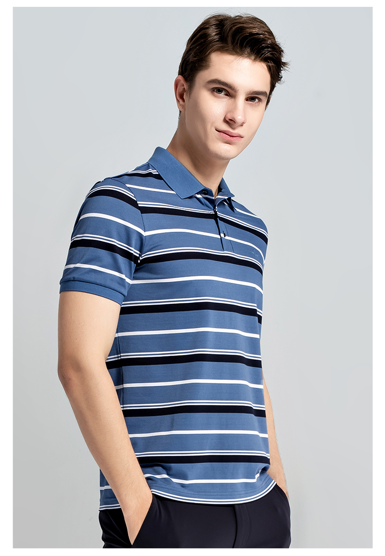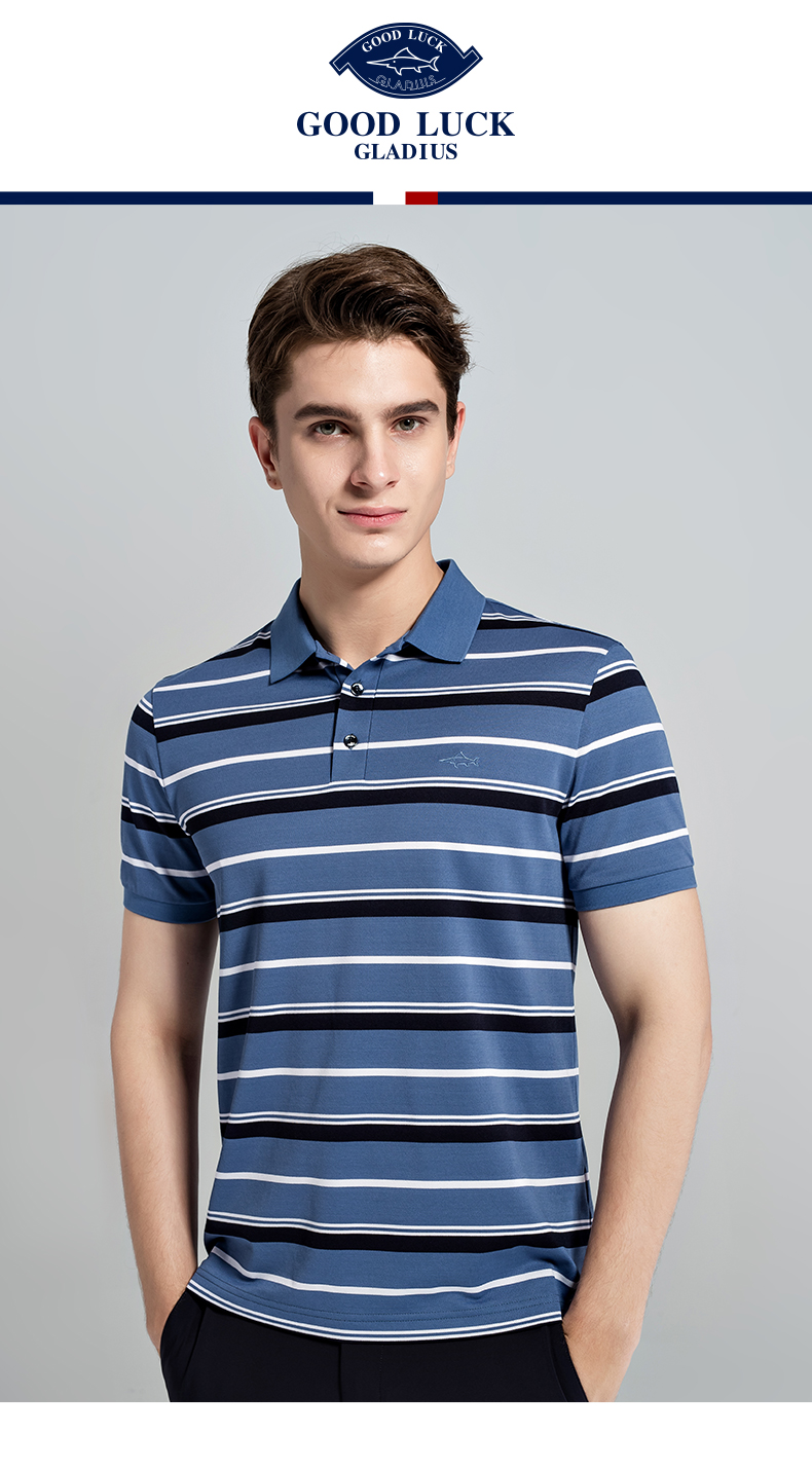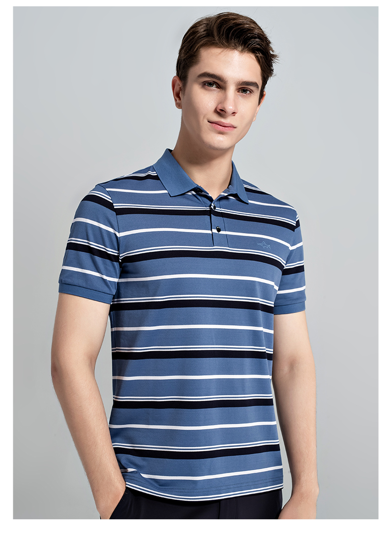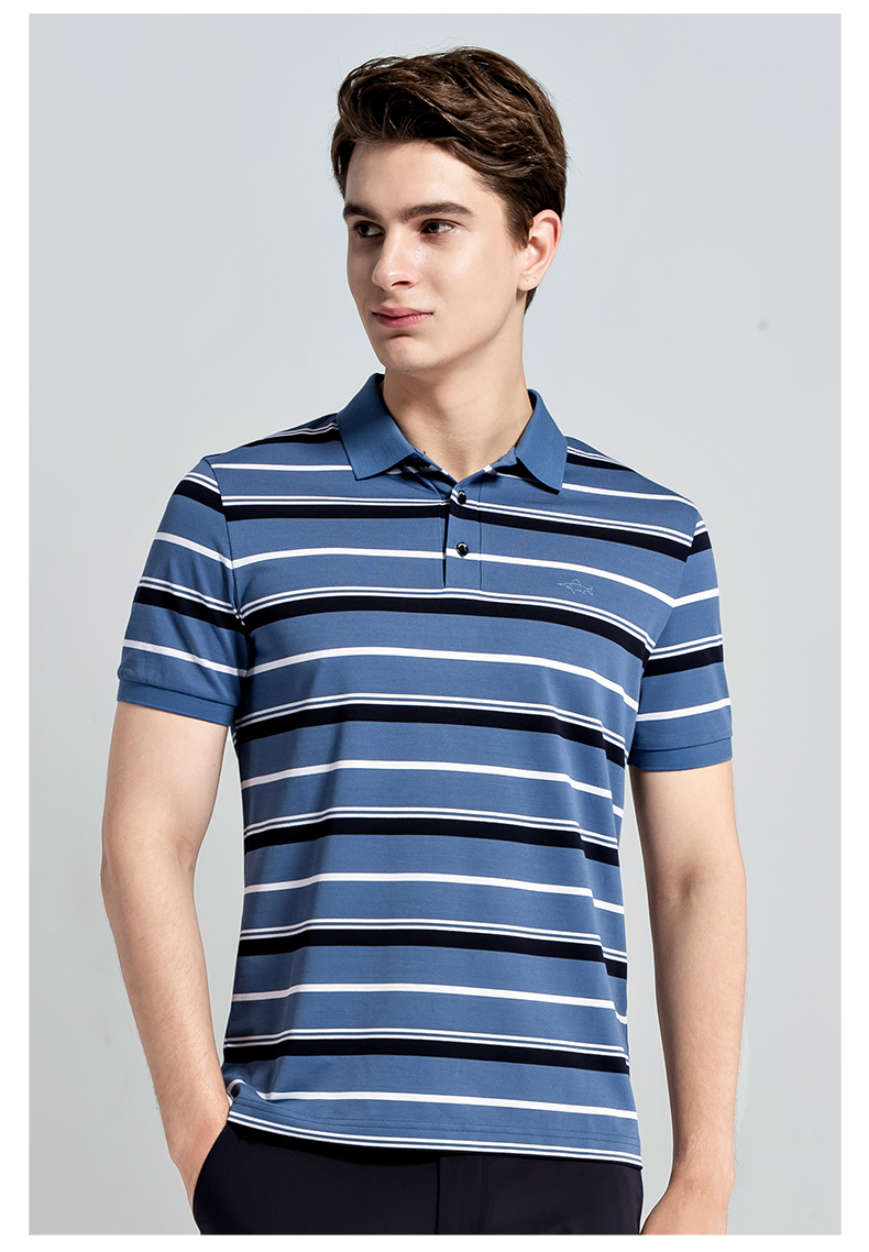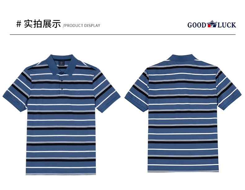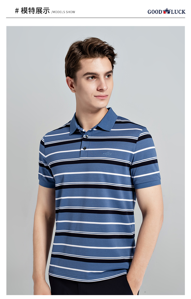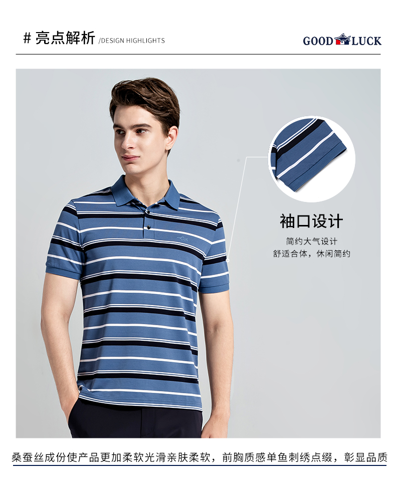 GOOD LUCK/德鲨棉桑蚕丝混纺弹力舒适条纹短袖POLO衫LY13199