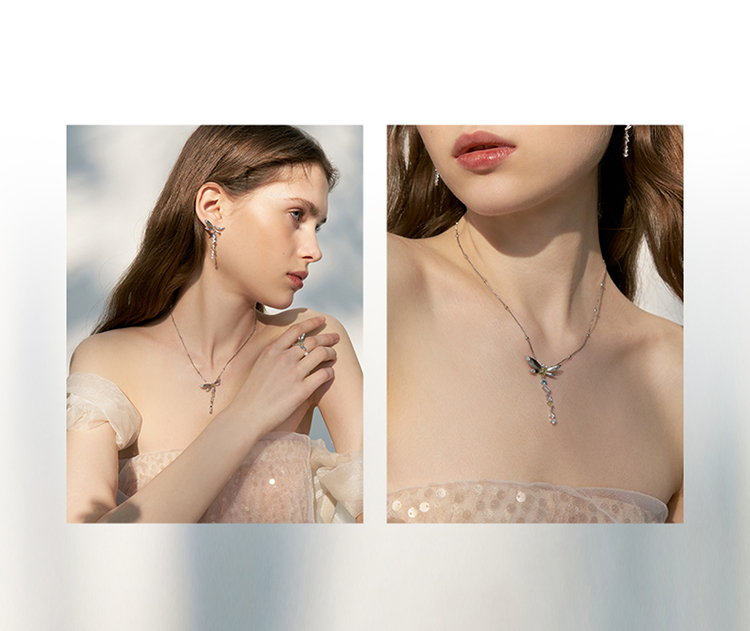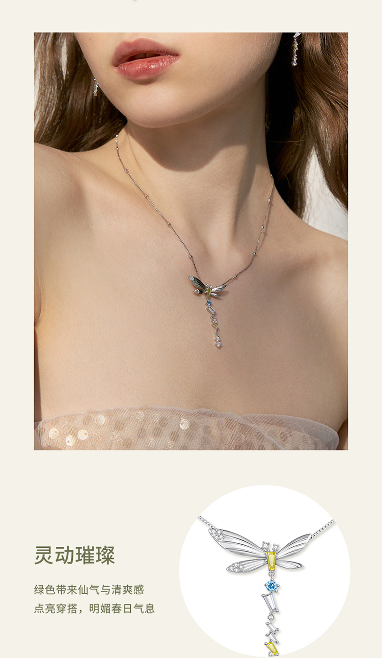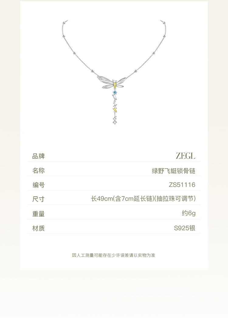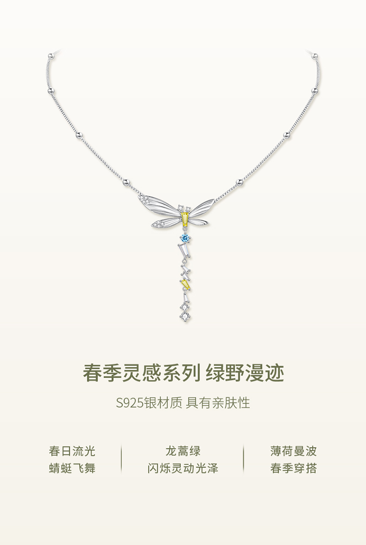 ZEGL设计师绿野漫迹系列925银蝴蝶项链女2024新款流苏锁骨链饰品