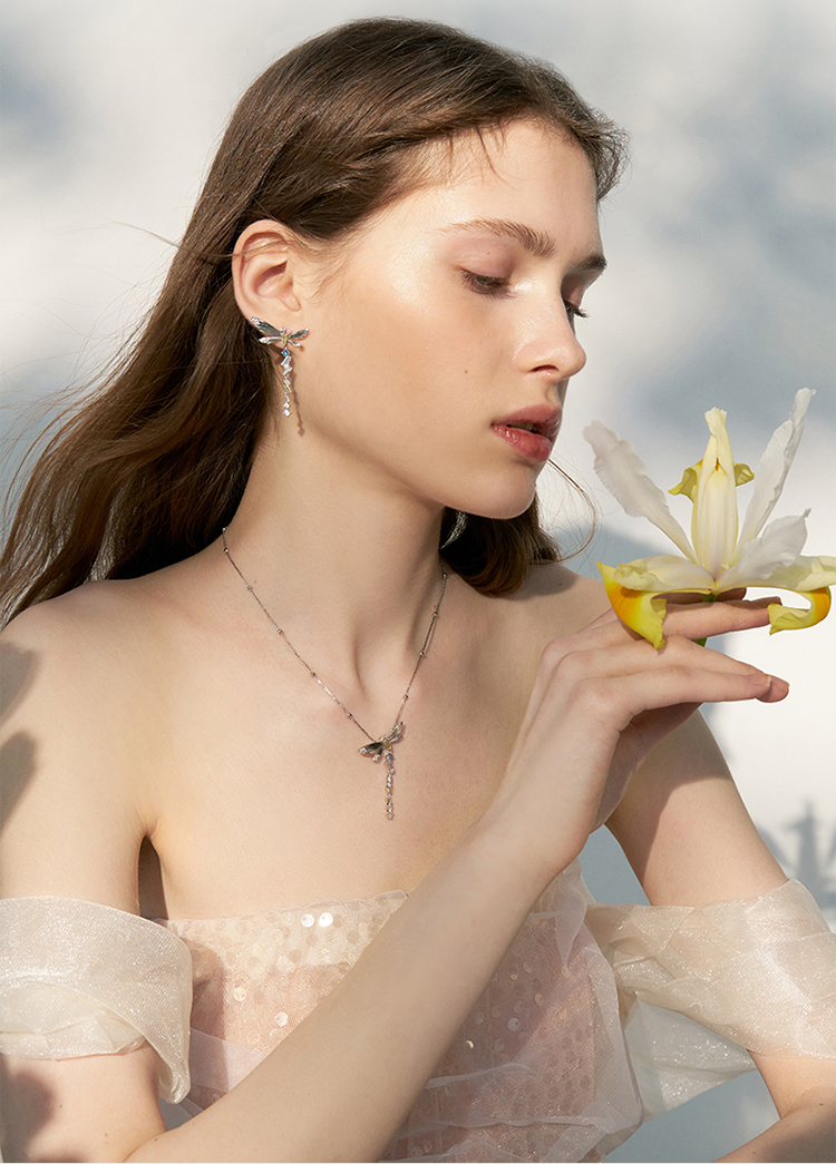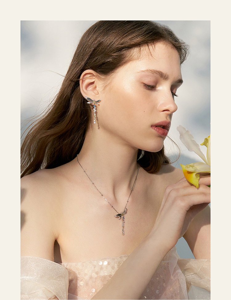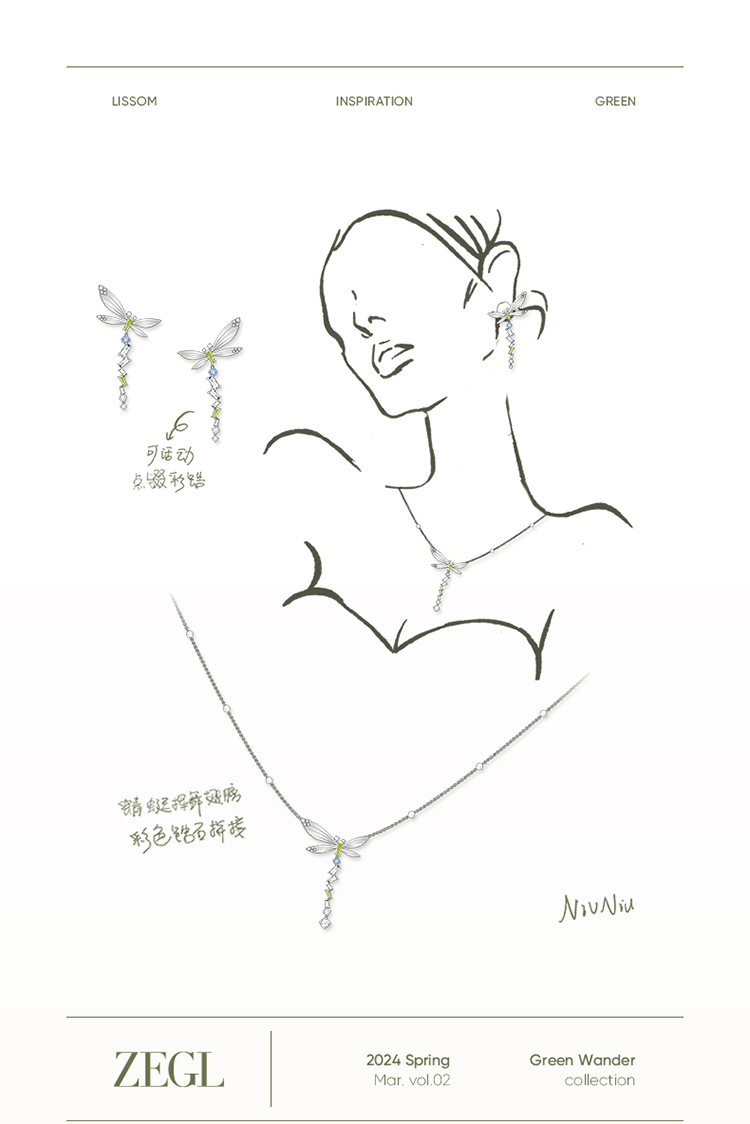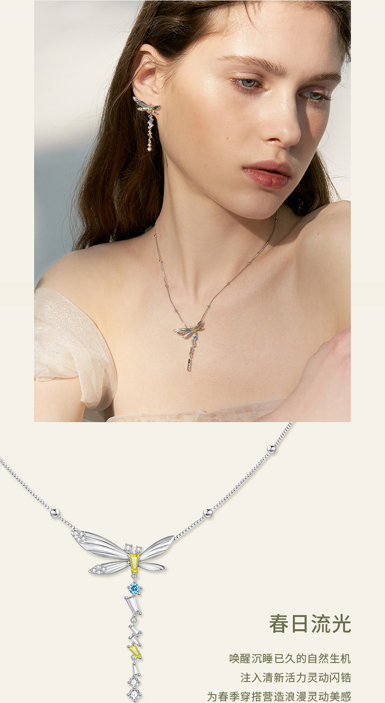 ZEGL设计师绿野漫迹系列925银蝴蝶项链女2024新款流苏锁骨链饰品