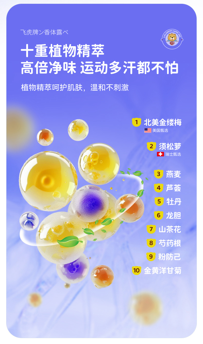 飞虎牌 儿童小黄瓶香体露 45ml