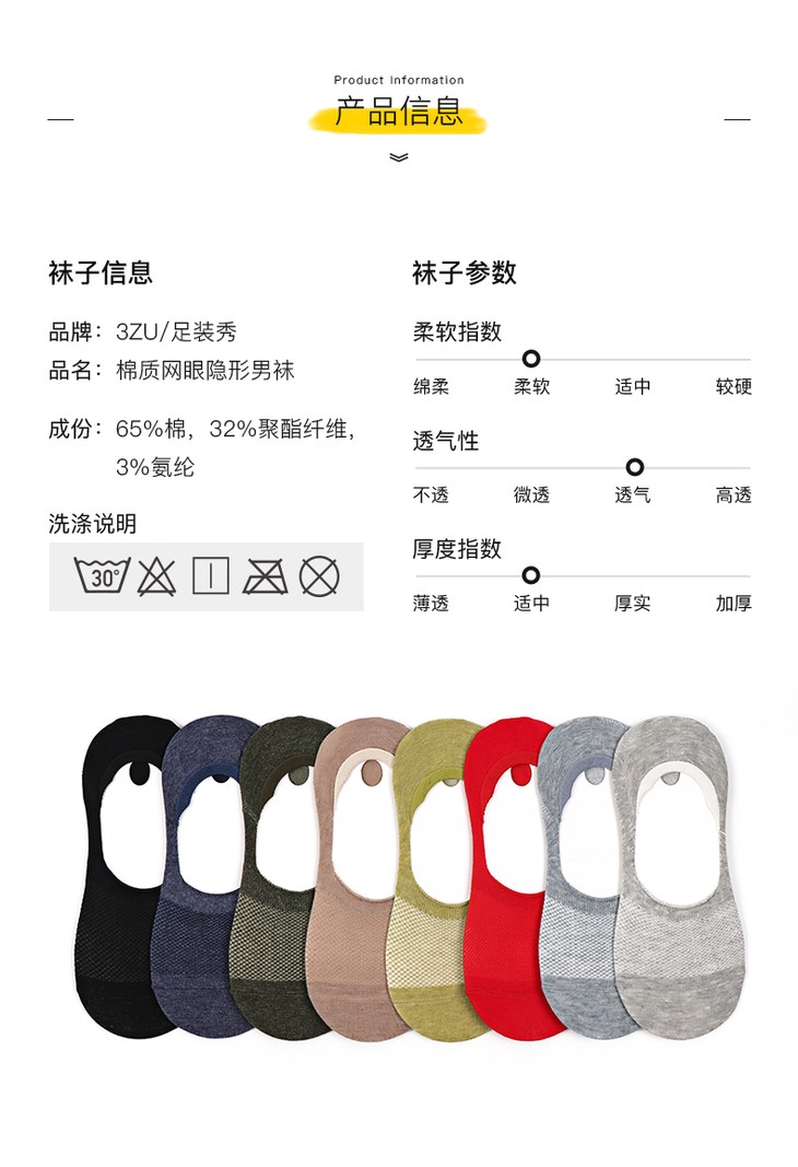 【任选8双59.5】官网正品商城同款棉质网眼隐形袜子男船袜春秋季袜子夏季隐形袜短邦男士袜