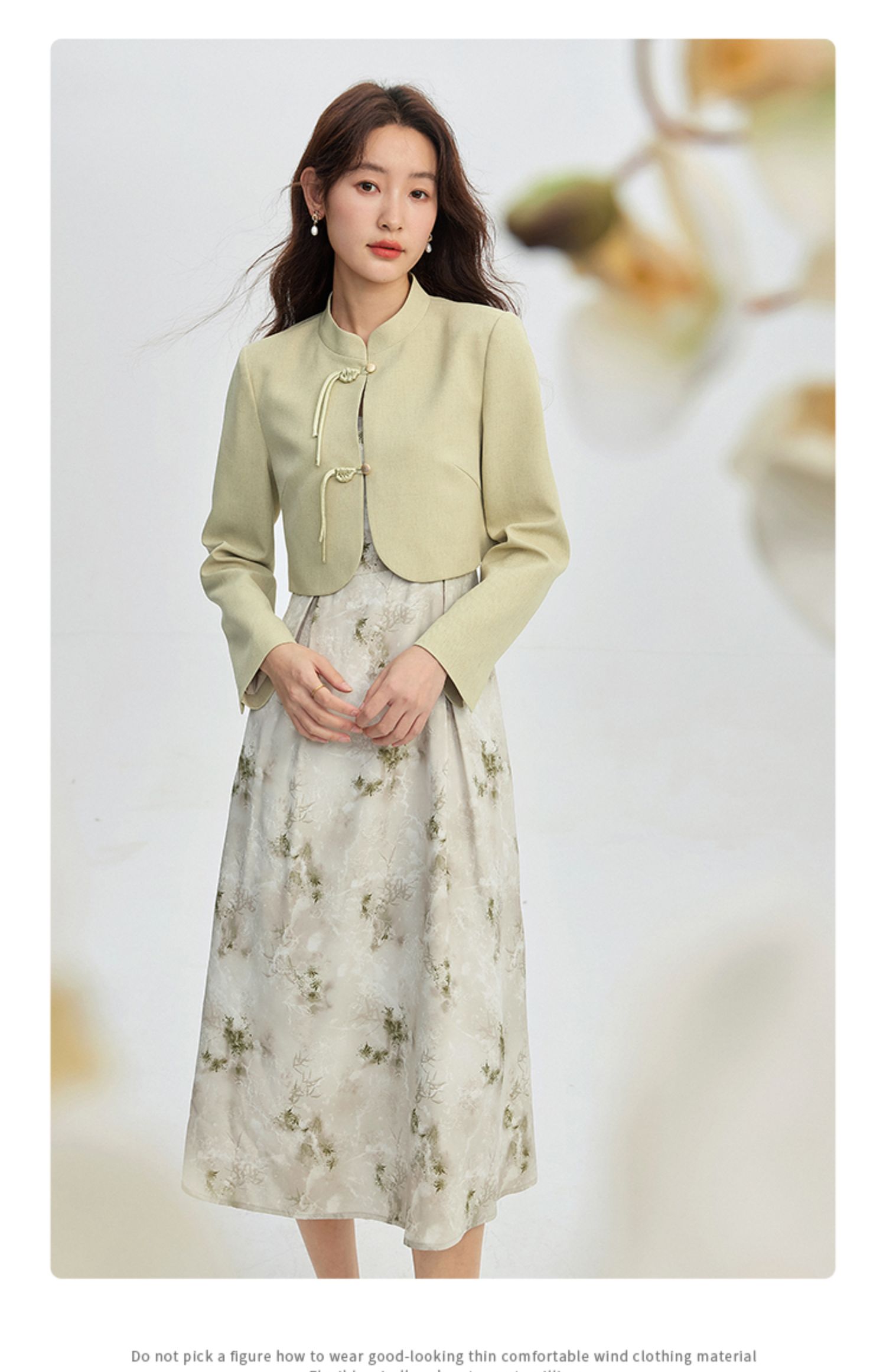 【专属特价】熙世界新中式套装女2025秋季新款国风盘扣短外套印花连衣裙两件套