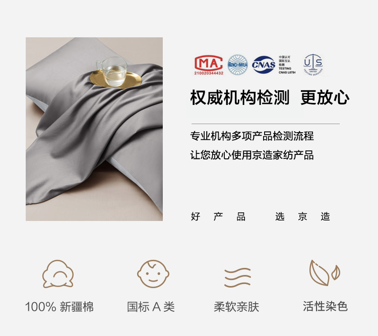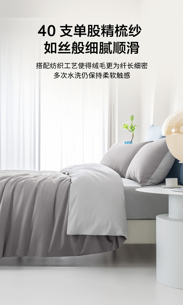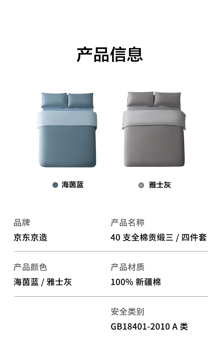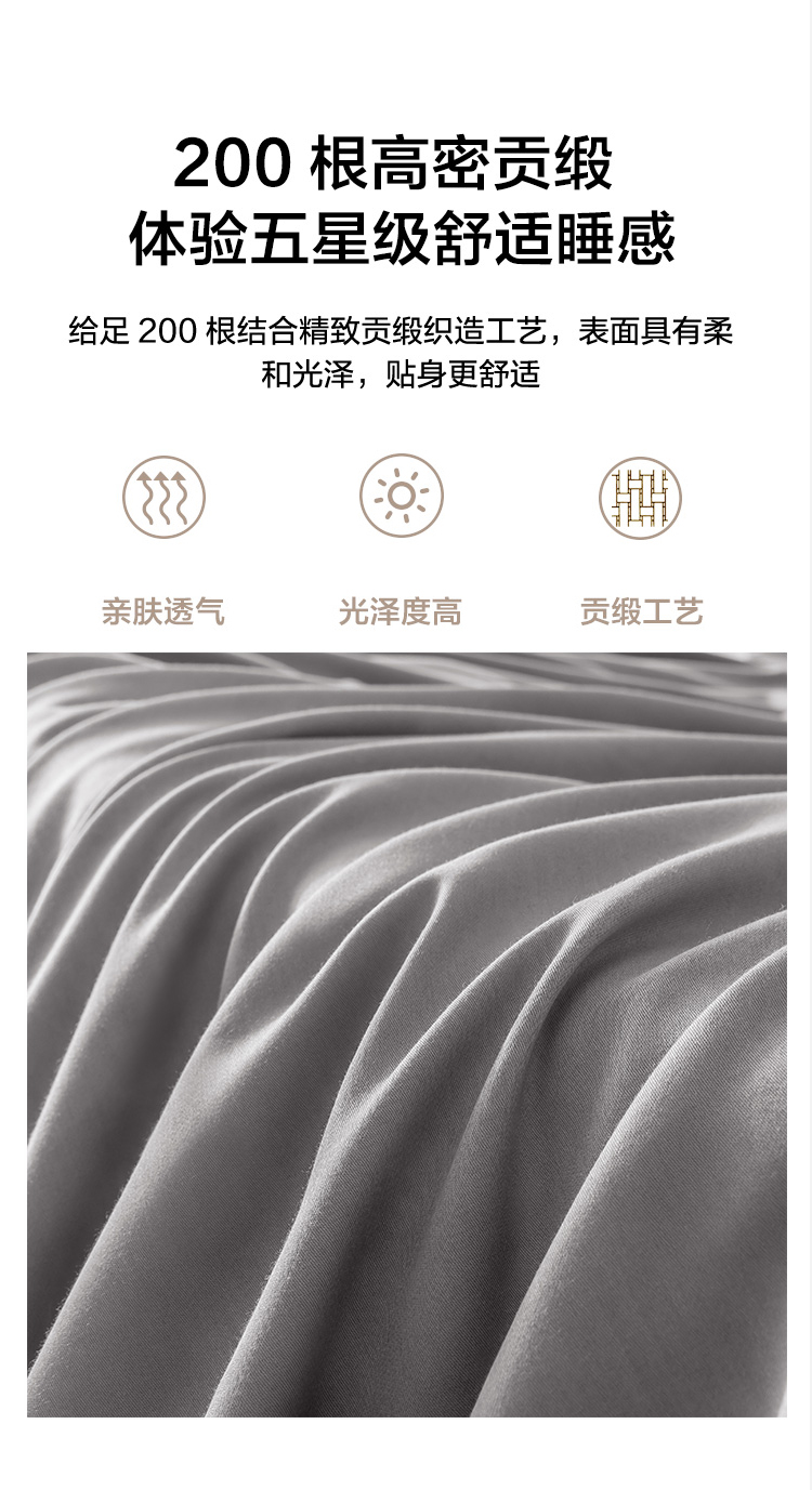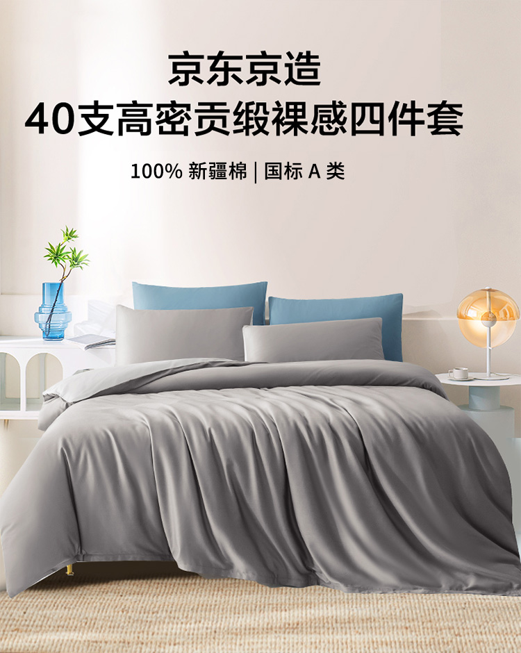 京东京造 国标A类 新疆棉缎纹四件套 纯棉被套床单枕套 高支高密床上用品 双人1.5m/1.8m床 雅士灰色