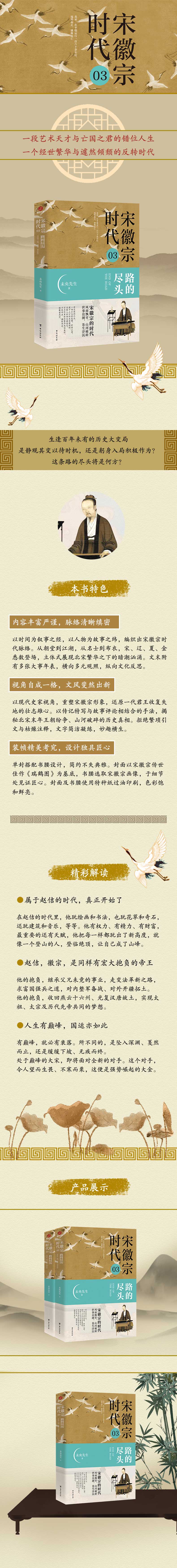 1.内容丰富严谨,脉络清晰缜密 以时间为叙事之经,以人物为故事之纬,编织出宋徽宗时代脉络。从朝堂到江湖,从名士到布衣,宋、辽、夏、金悉数登场,立体式展现北宋繁华之下的暗潮汹涌。文末附有多张大事年表,横向多元观照,纵向文化反思。 2.视角自成一格,文风斐然出新 以现代史家视角,重塑宋徽宗形象,还原一代君王收复失地的壮志雄心。以传记特写与故事评论相结合的手法,揭秘北宋末年王朝纷争、山河破碎的历史真相。拒绝繁琐引文与枯燥注释,文字简洁凝练,妙趣横生。 3.装帧精美考究,设计独具匠心 单封搭配书腰设计,简约不失典雅。封面以宋徽宗传世佳作《瑞鹤图》为基底,书腰选取宋徽宗画像,于细节处见证匠心。封面及书腰使用特种纸过油印刷,色彩饱和鲜亮。