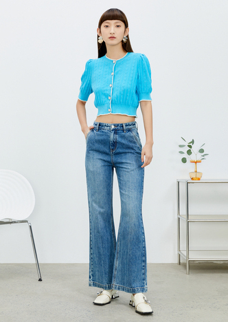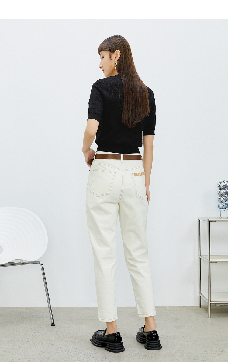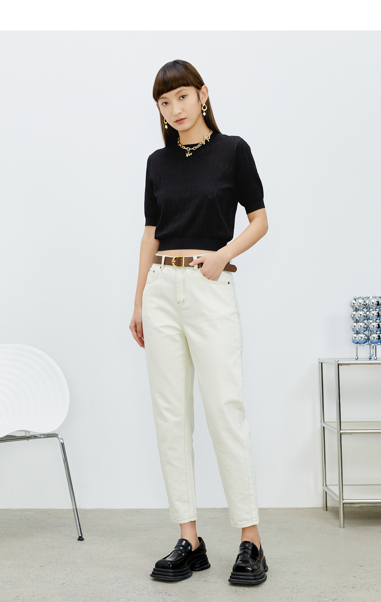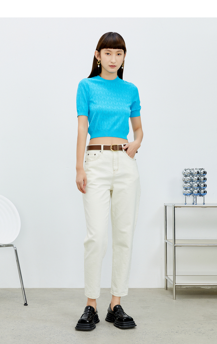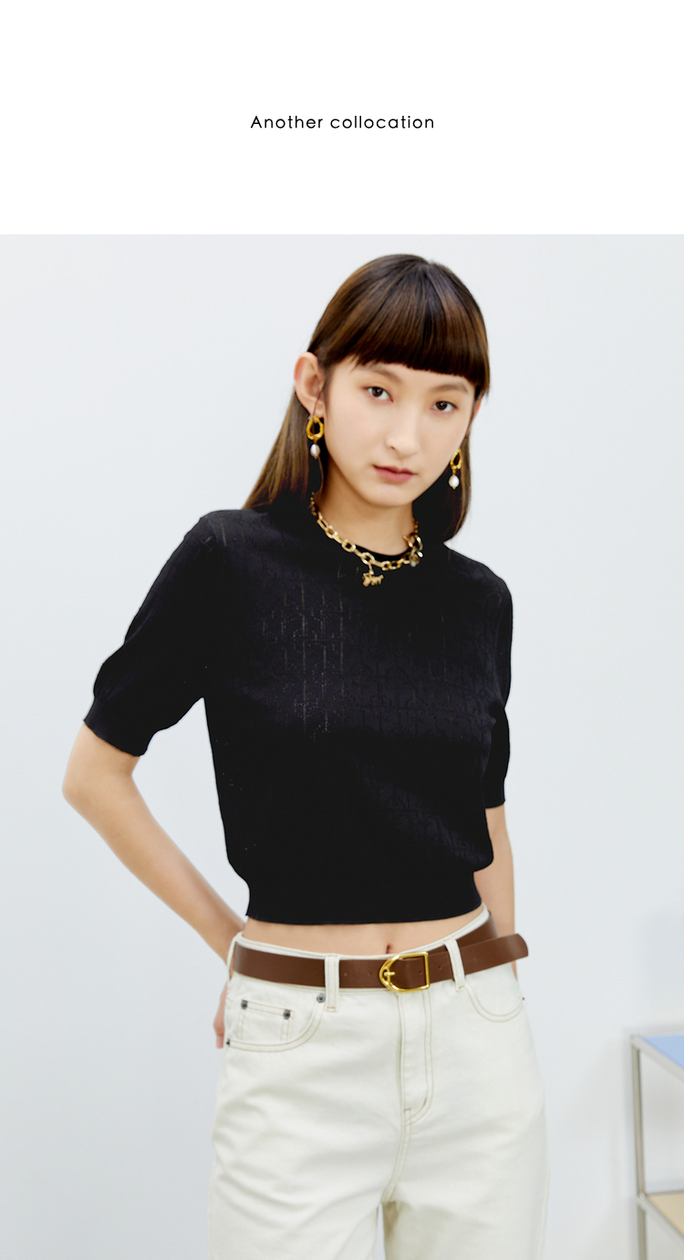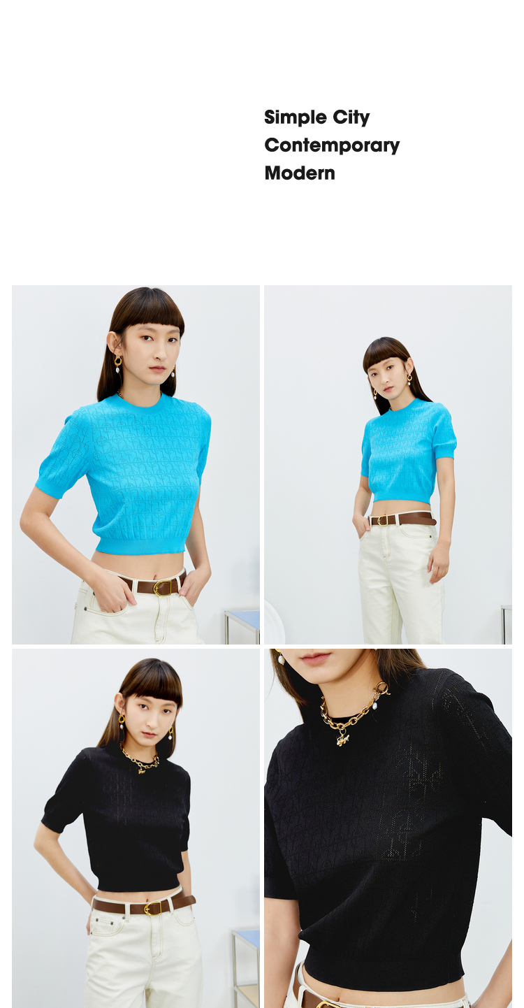 NEELLY纳俪商场同款圆领针织衫女短袖修身套头衫春夏新款短款时尚N22032A01144