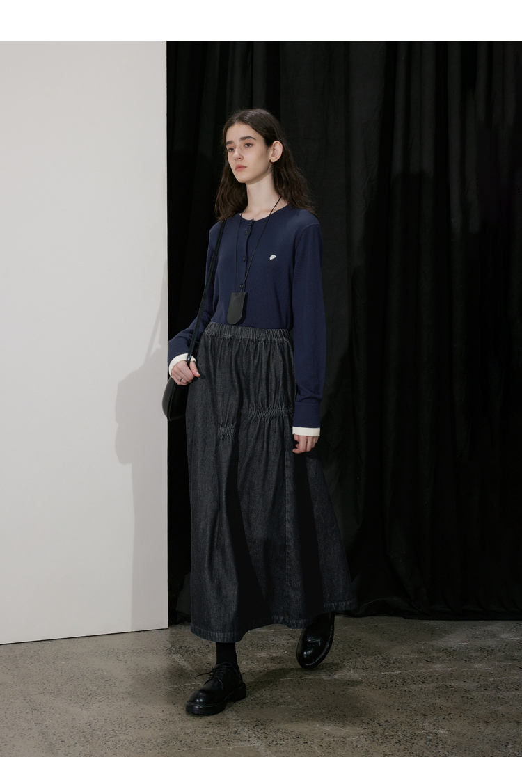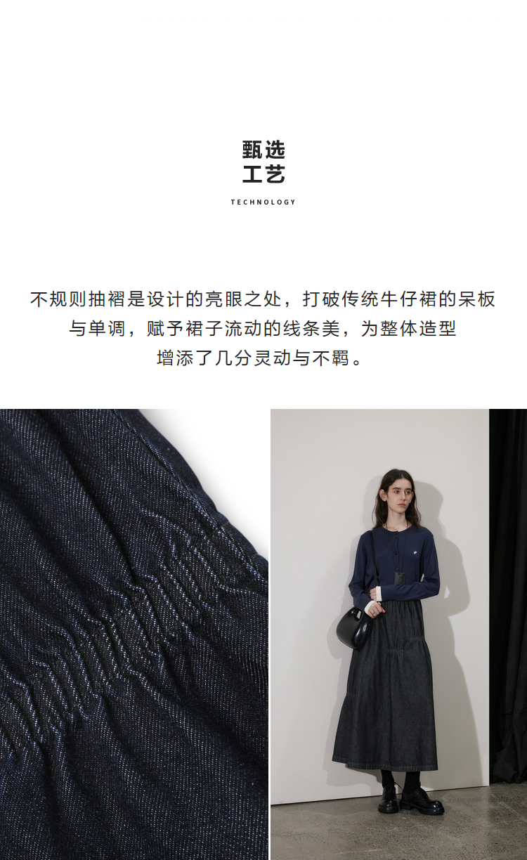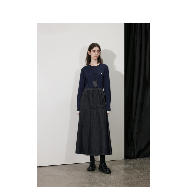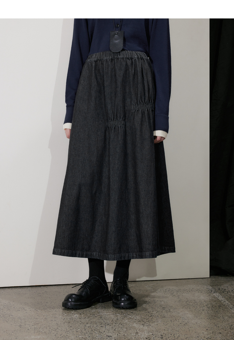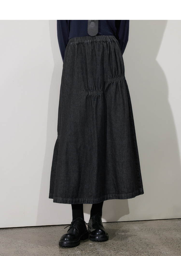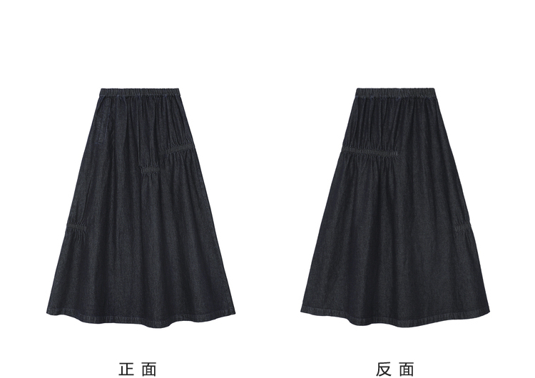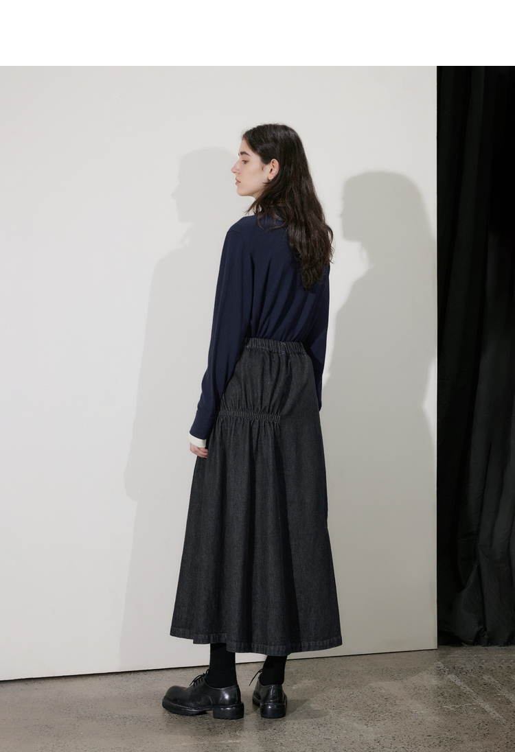 半圆/D24410461/牛仔不规则抽褶长款半身裙
