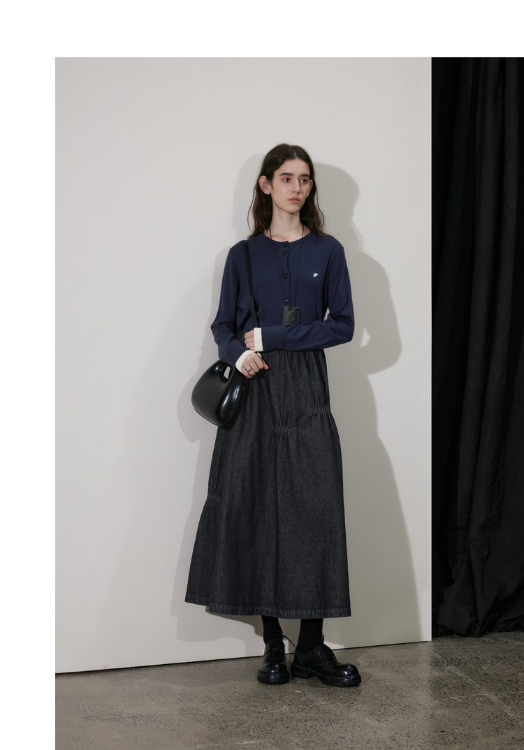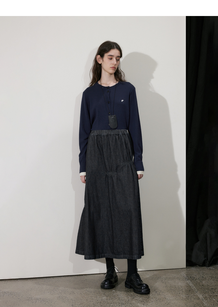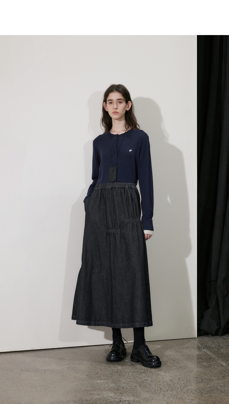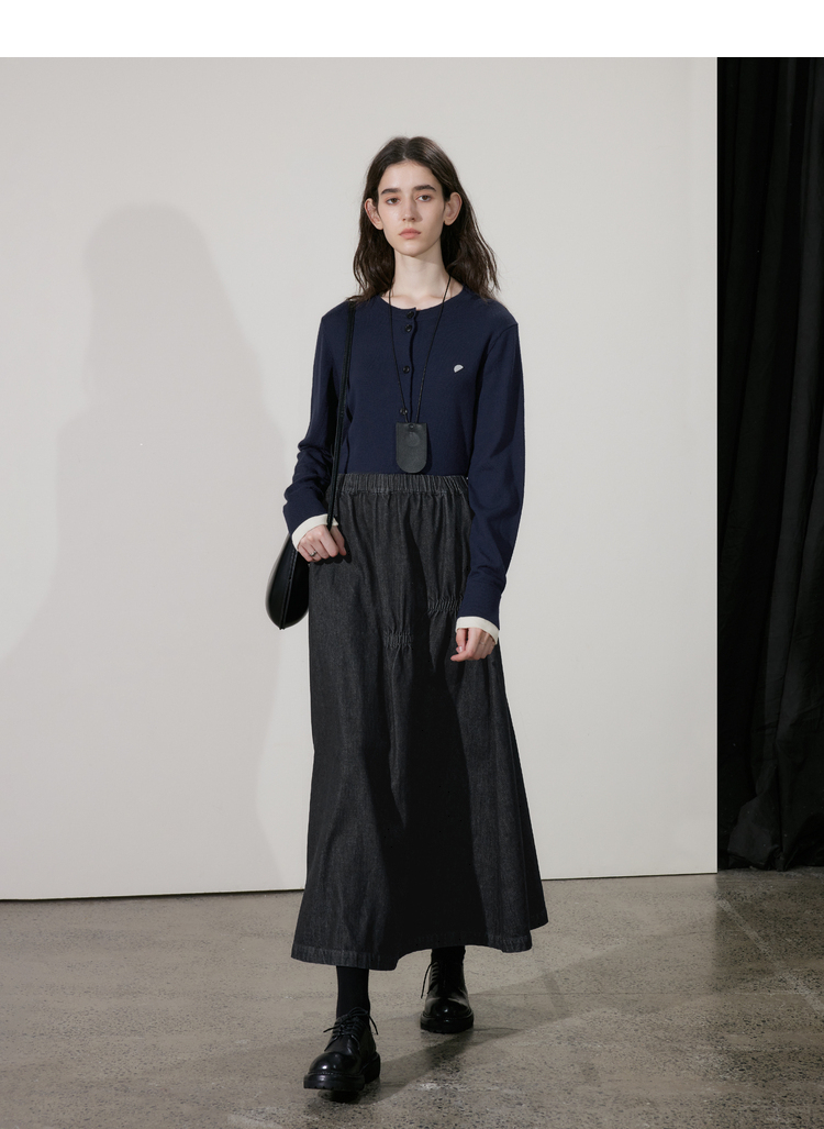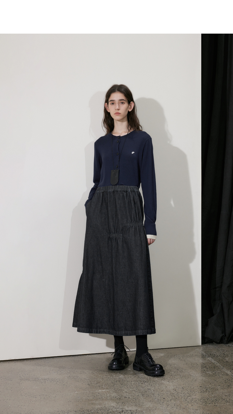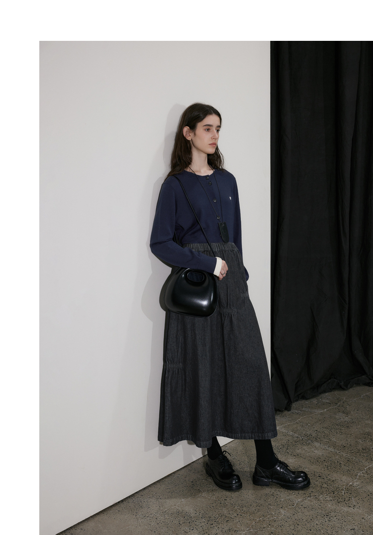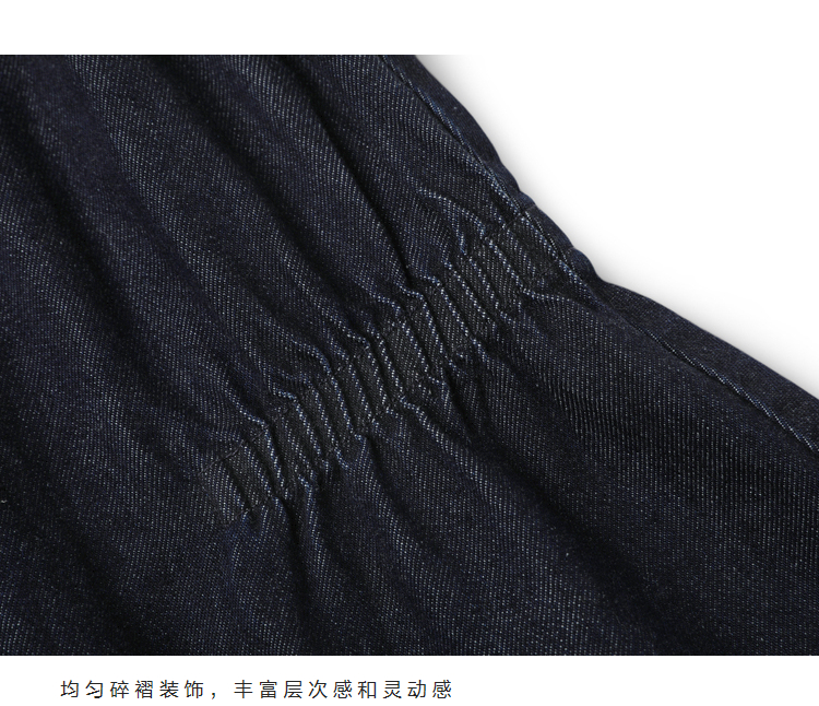 半圆/D24410461/牛仔不规则抽褶长款半身裙