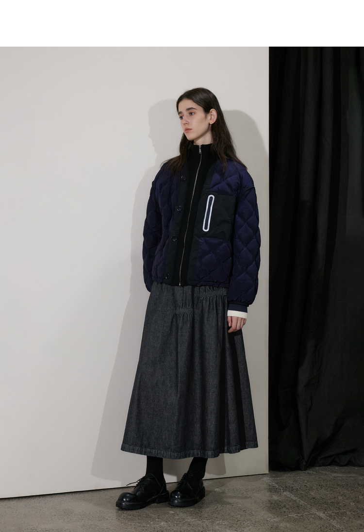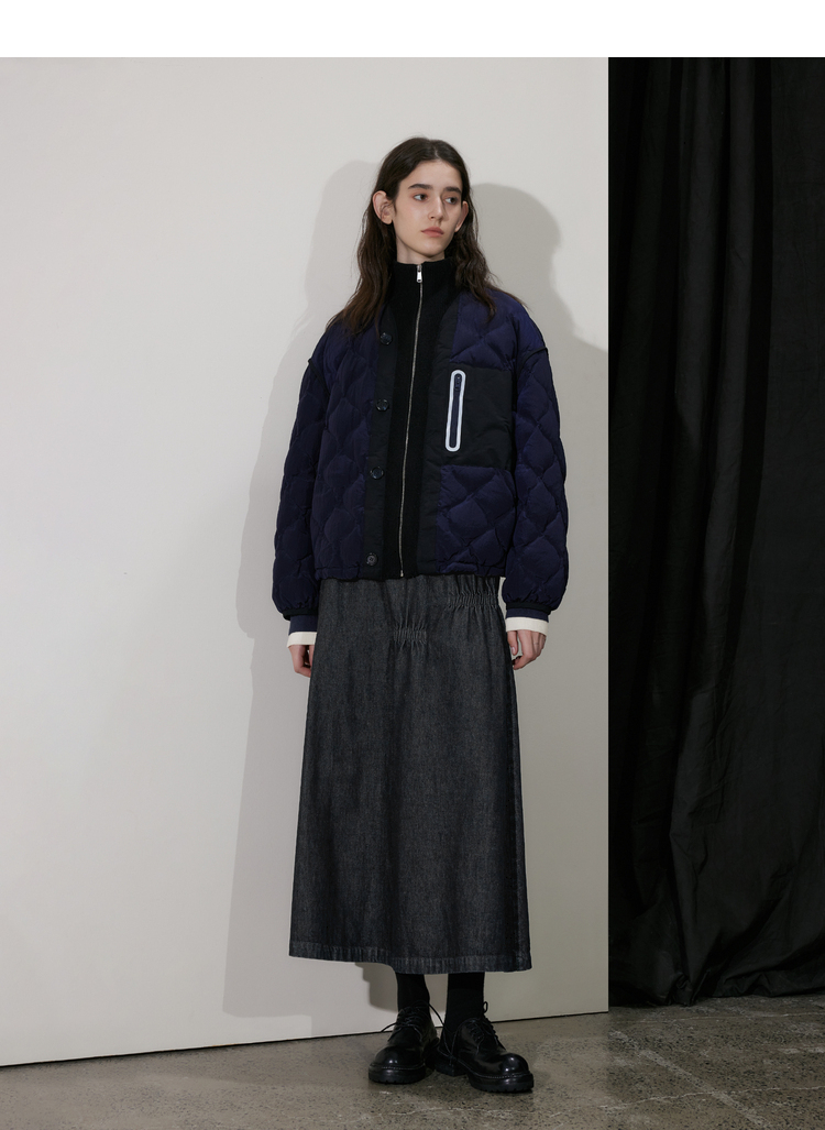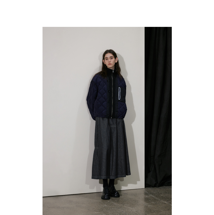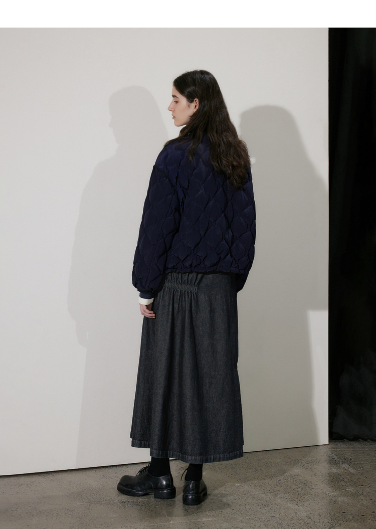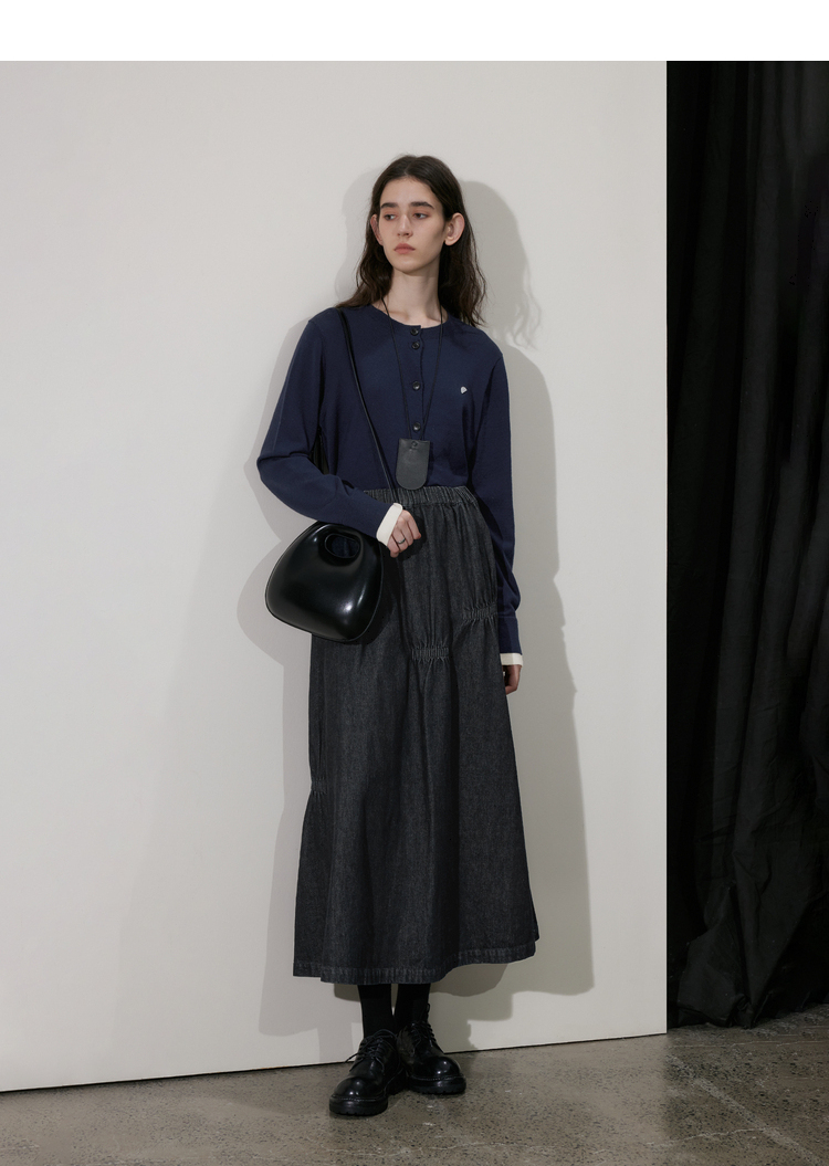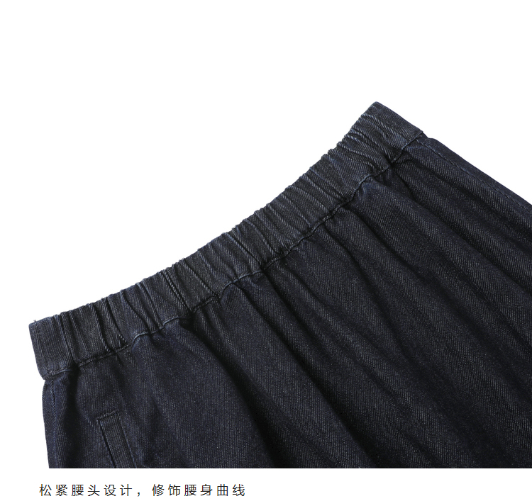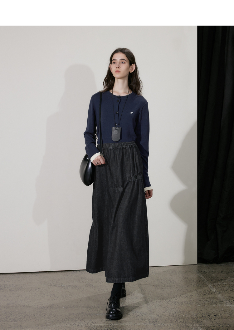 半圆/D24410461/牛仔不规则抽褶长款半身裙