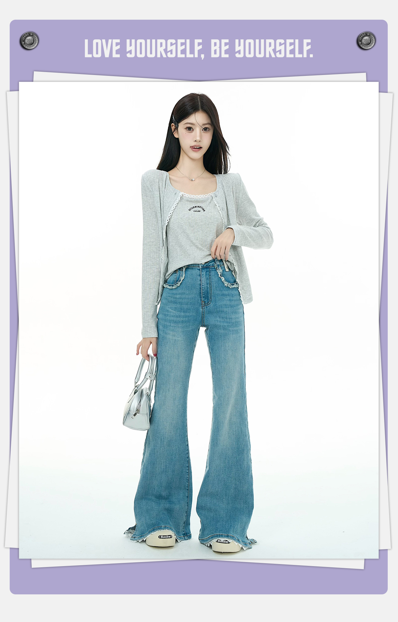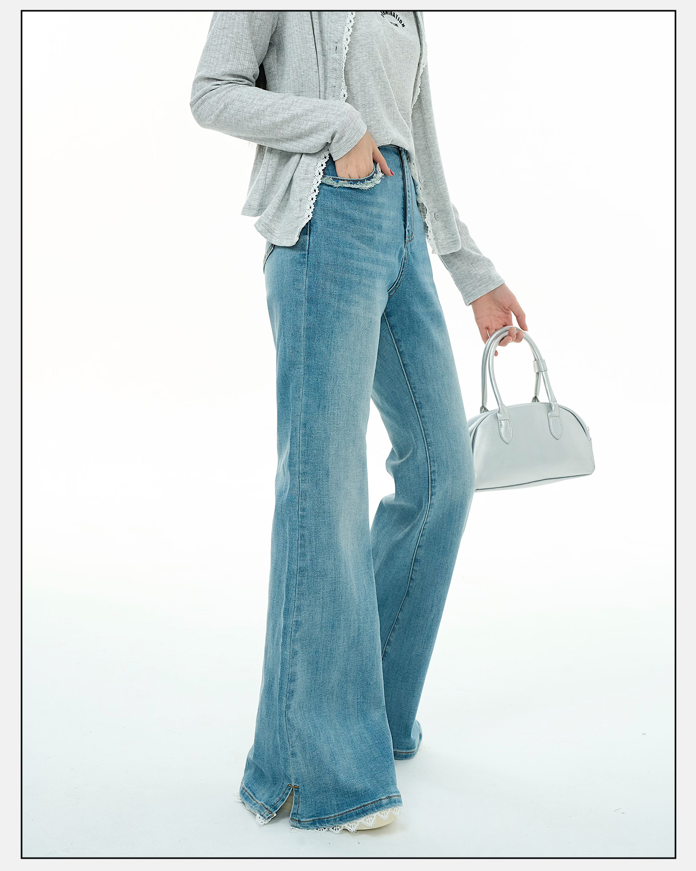 P&X设计师女装2025秋季微喇修身高腰牛仔长裤825310258 蓝色