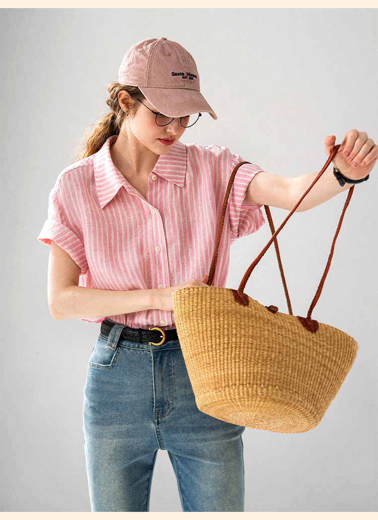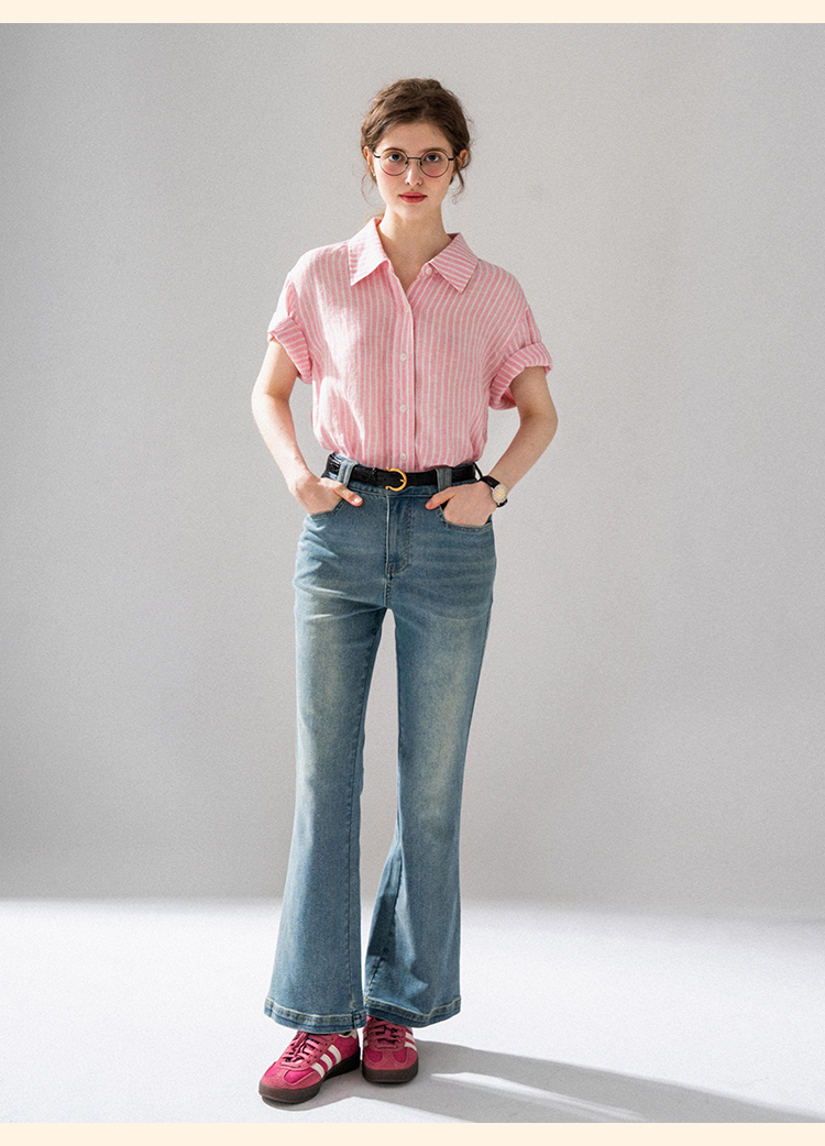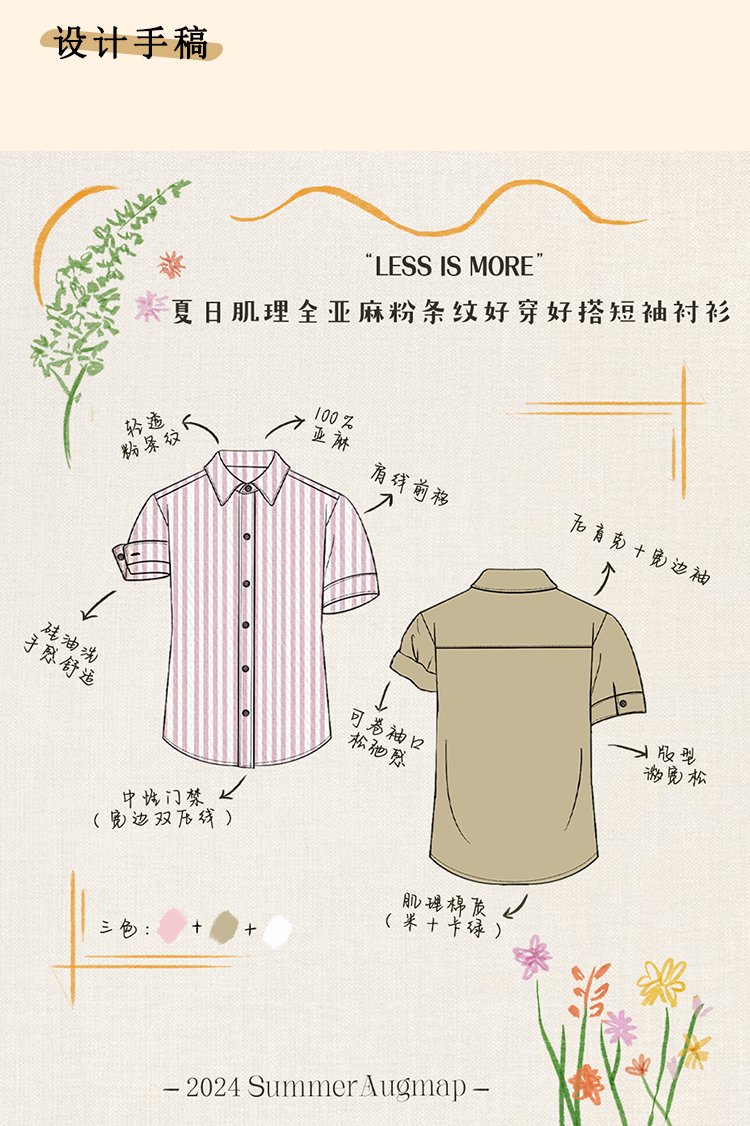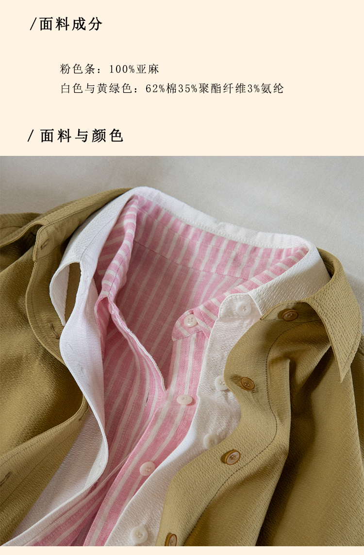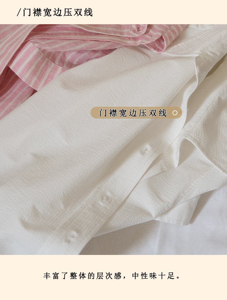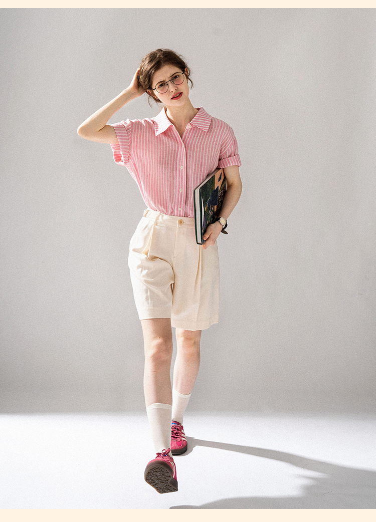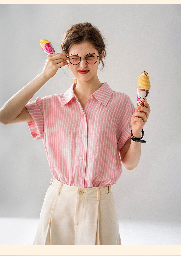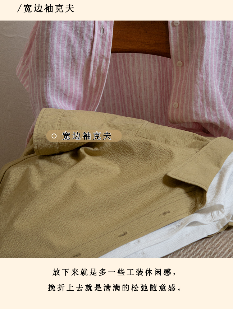浮生八记/24A058/夏日肌理全亚麻粉条纹好穿好搭短袖衬衫
