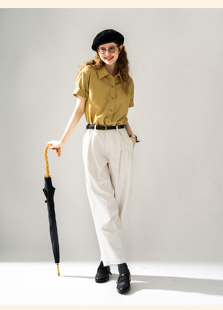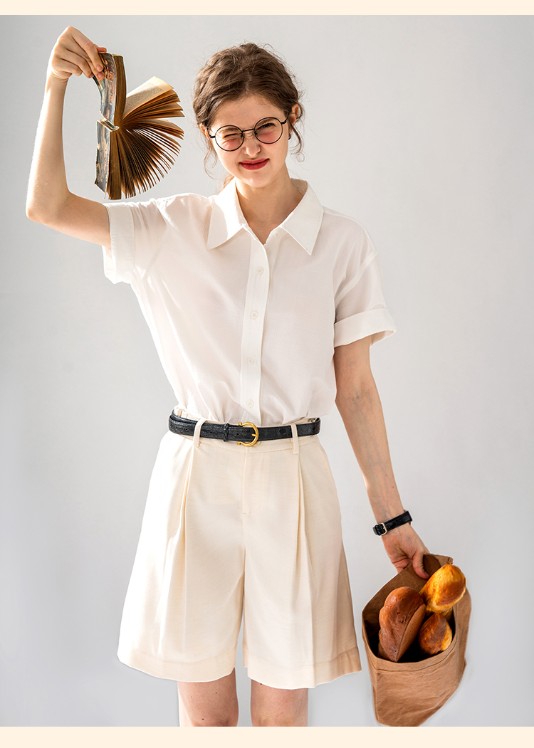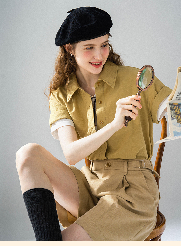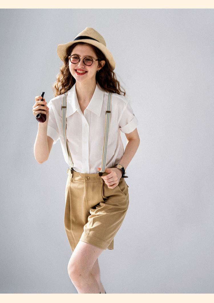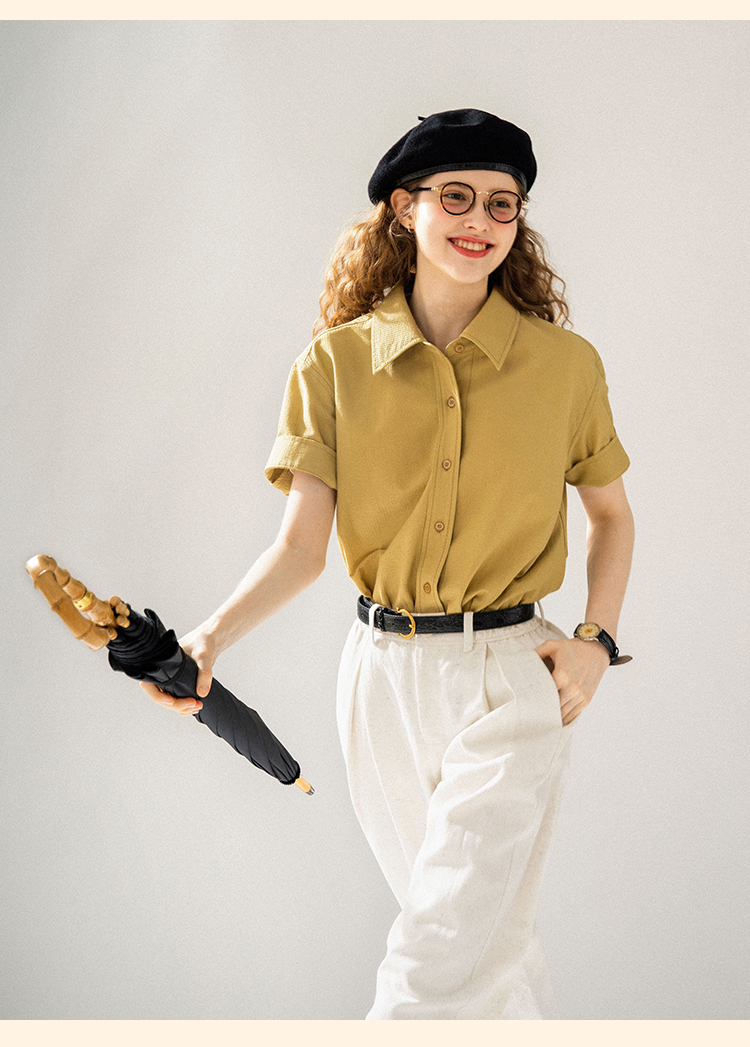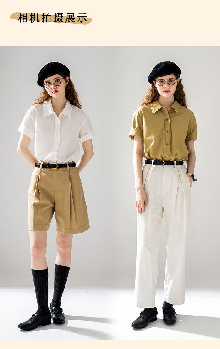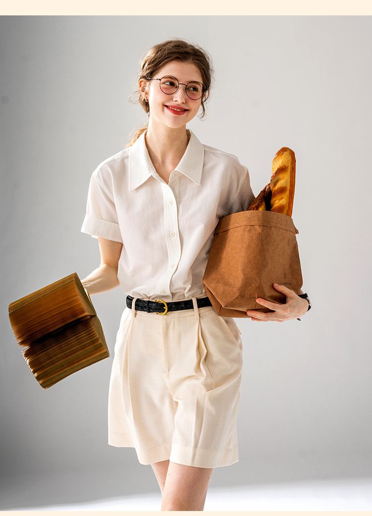 浮生八记/24A058/夏日肌理全亚麻粉条纹好穿好搭短袖衬衫