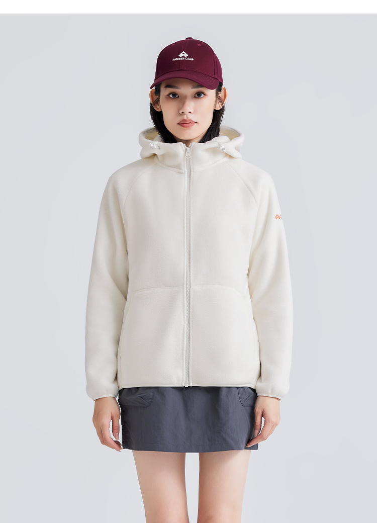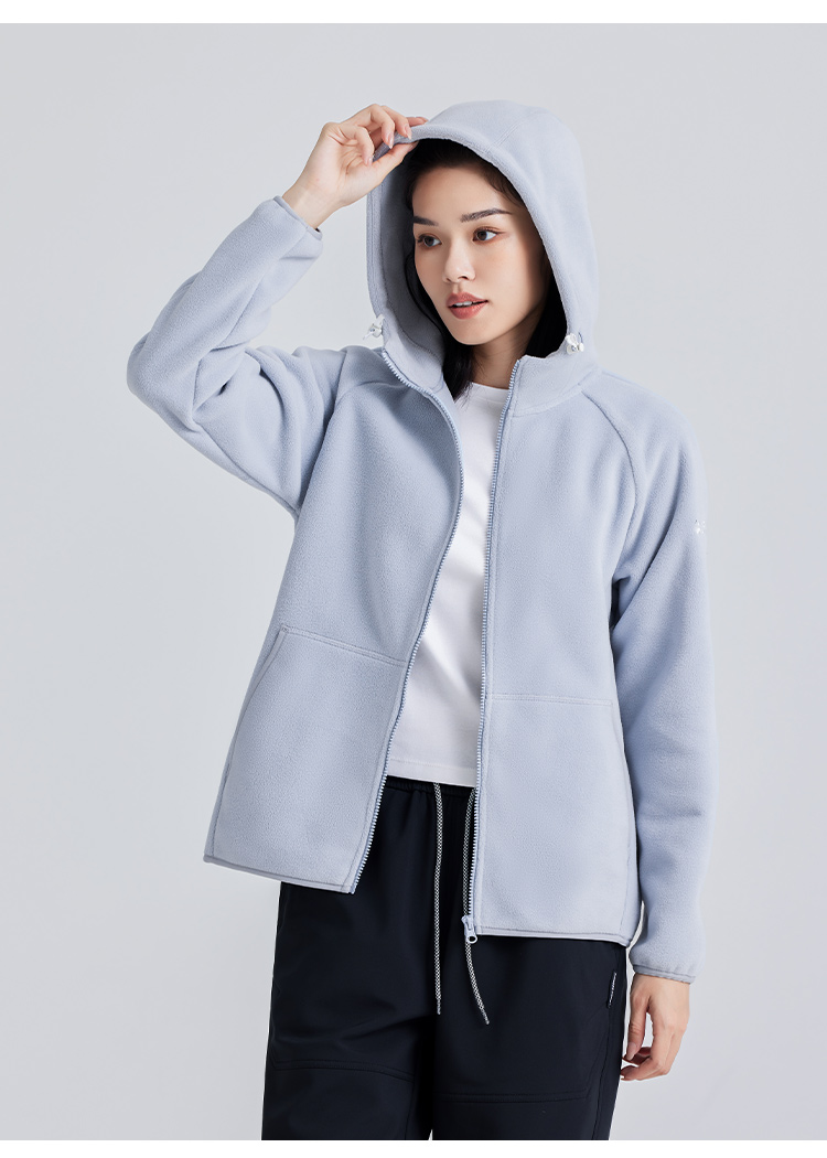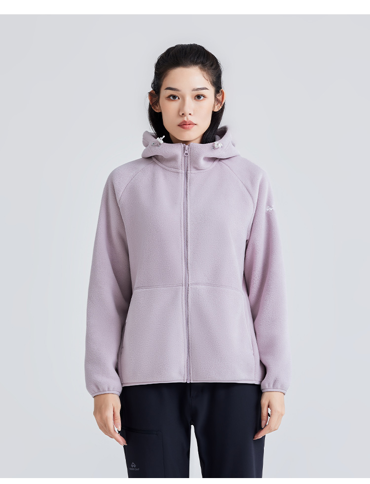 拓路者抓绒衣外套女24年秋冬新款摇粒绒连帽防风保暖拉链开衫上衣
