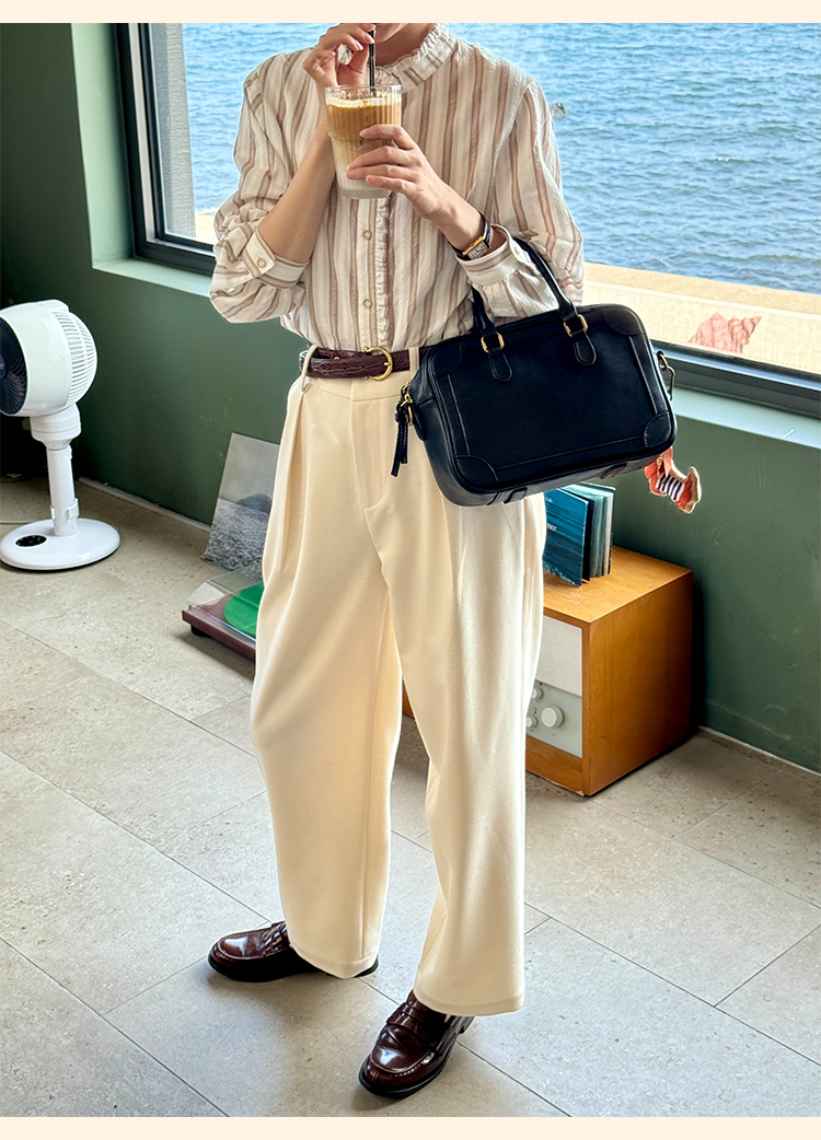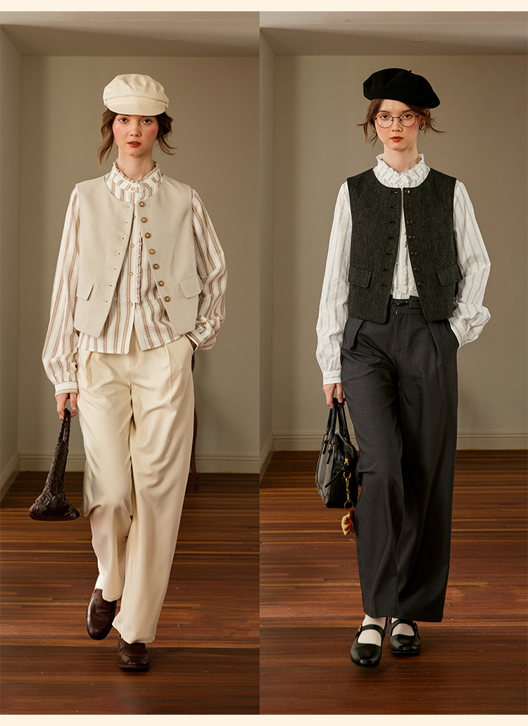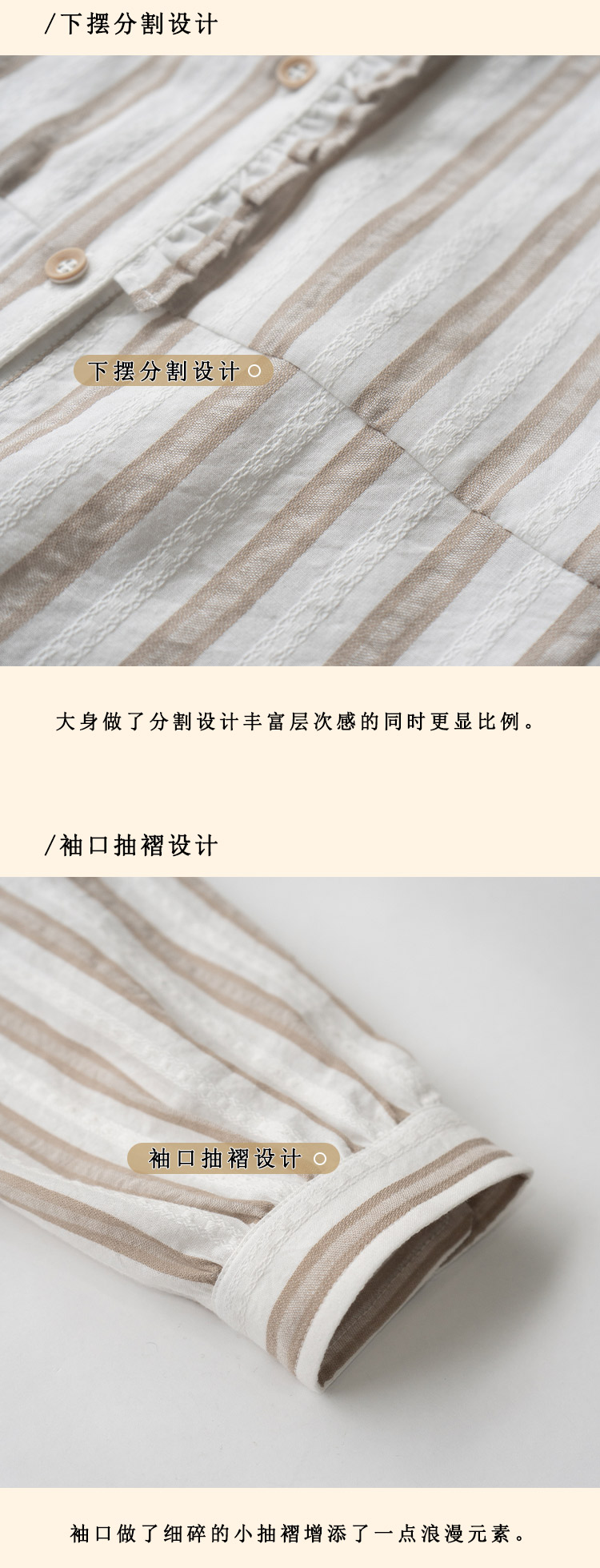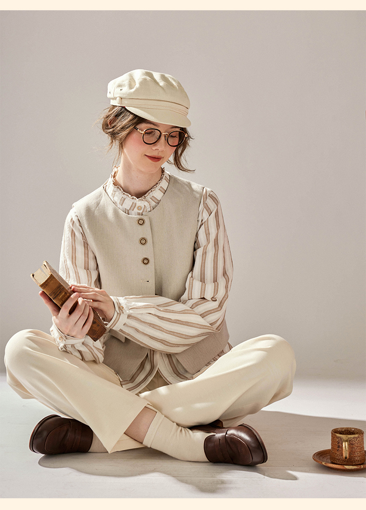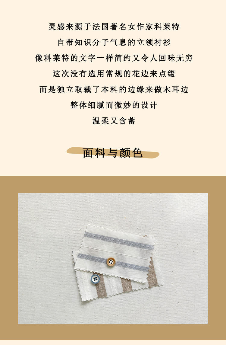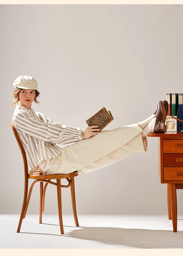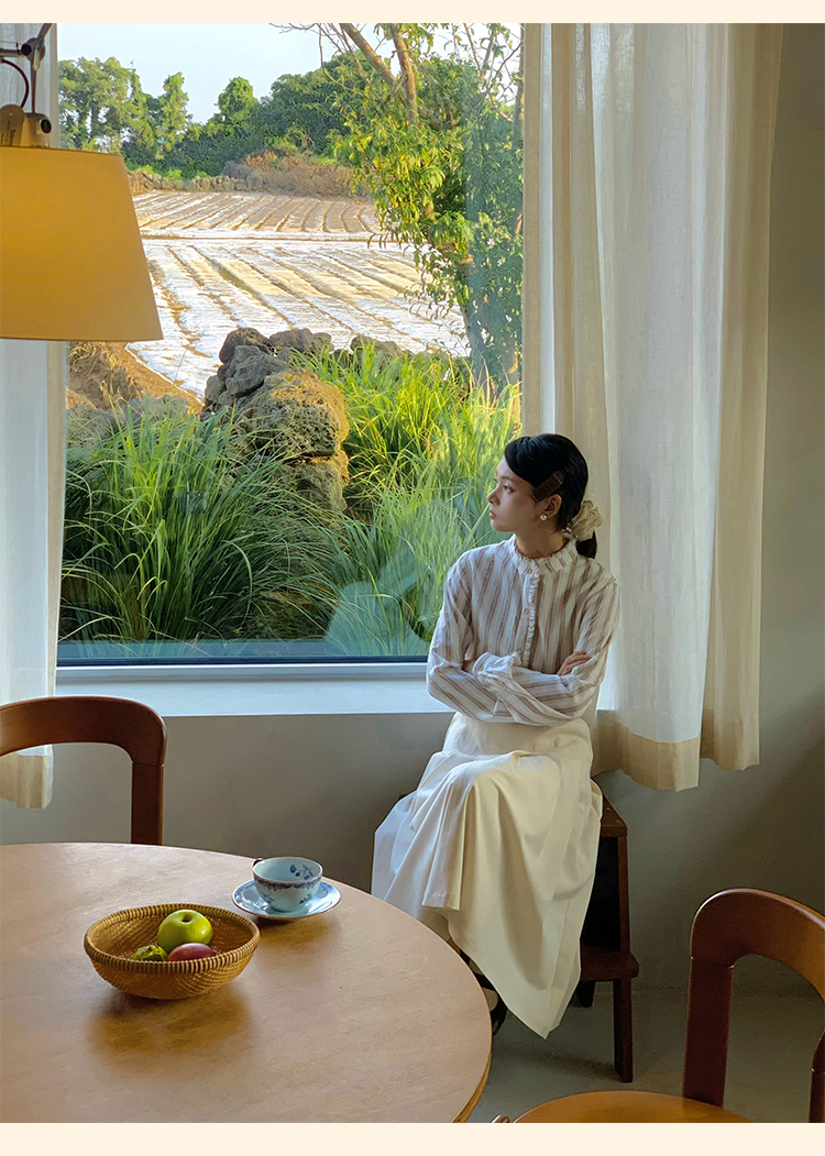 浮生八记/24C116/英式条纹木耳边立领百搭蓝白条纹衬衫
