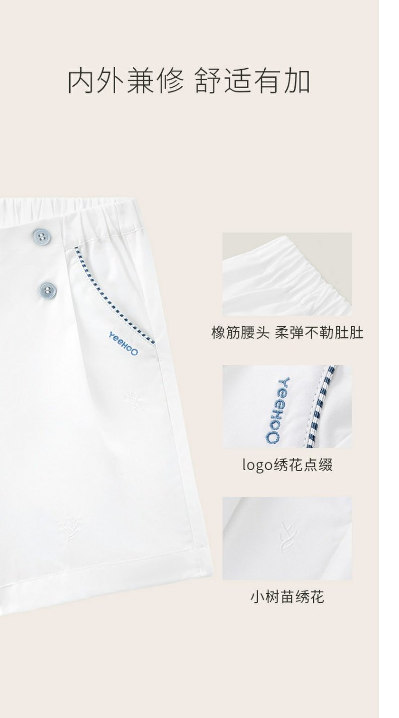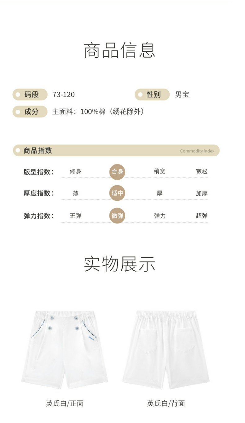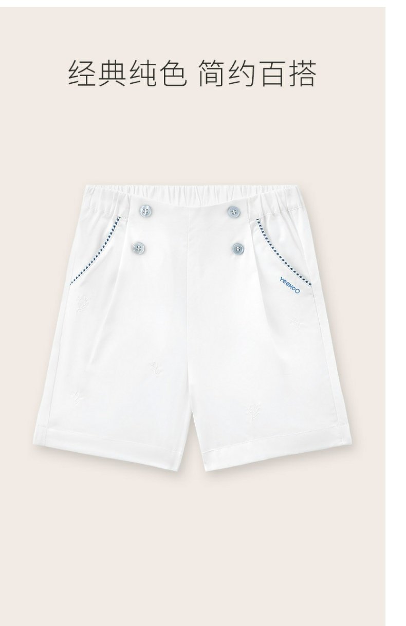 英氏白色短裤梭织男女宝宝23年新款夏季透气薄款裤子YRKEJ2P351A