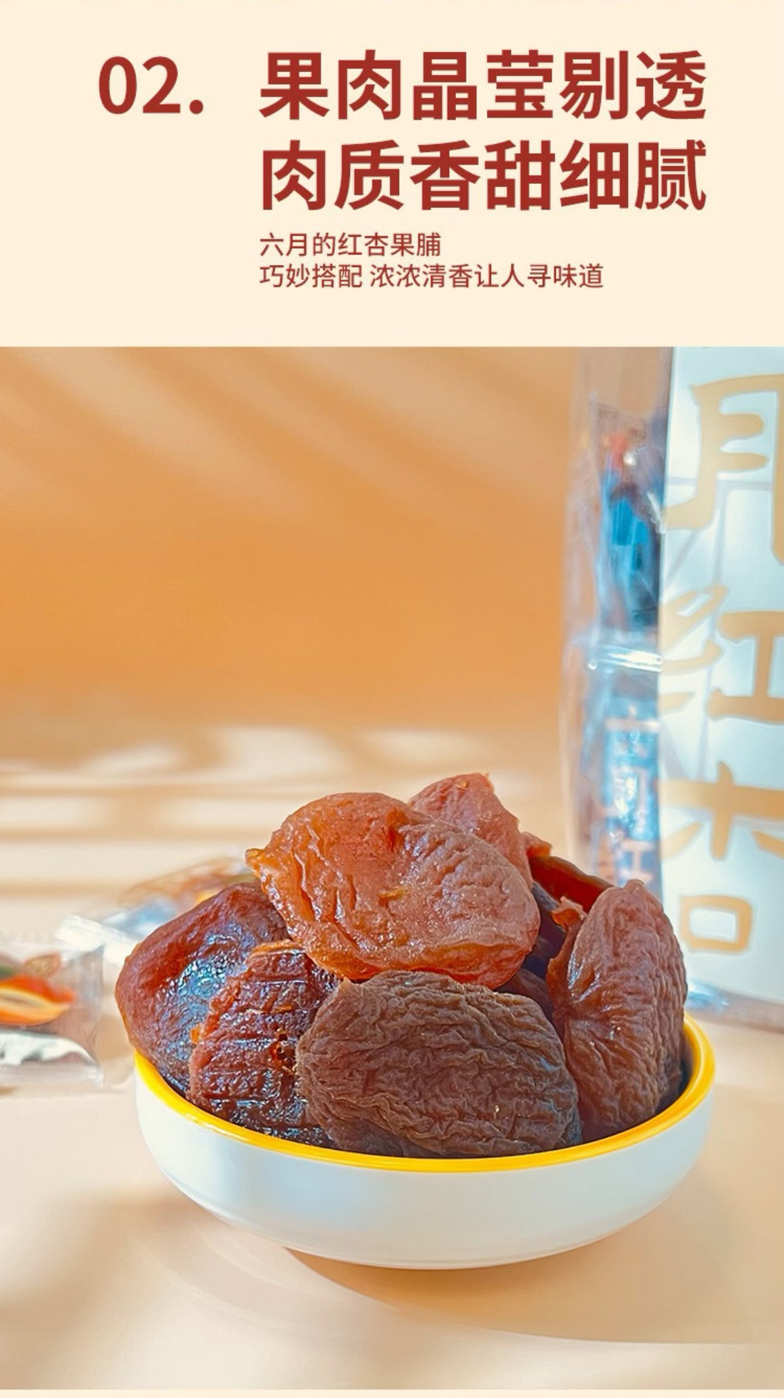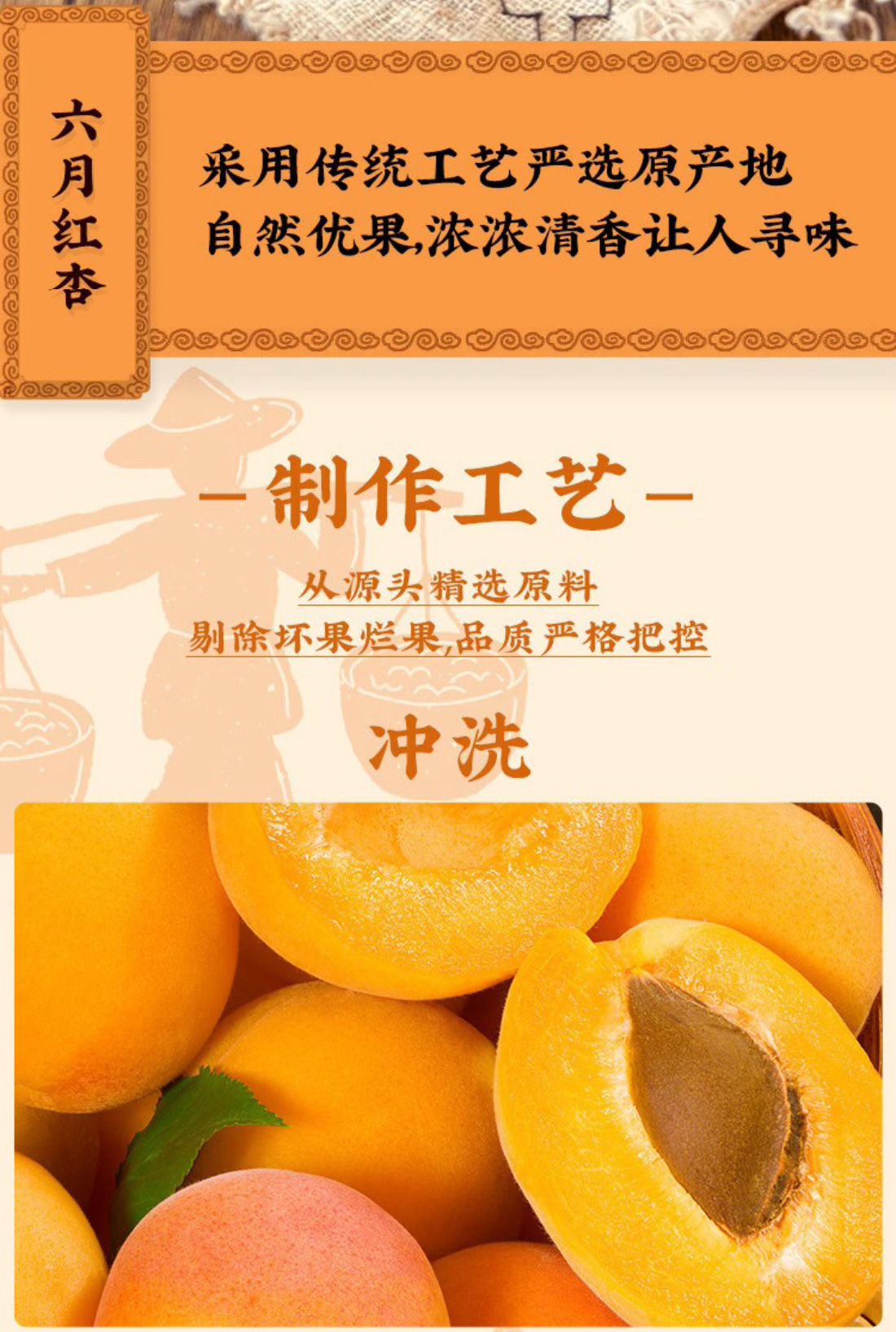 甄选优质红杏,每一颗都圆润饱满,去核,非遗技艺制作;