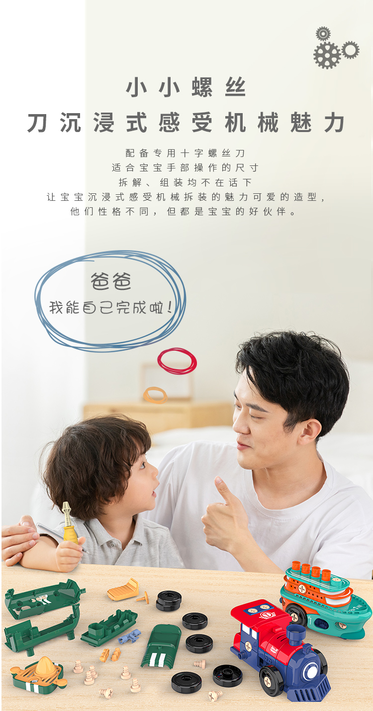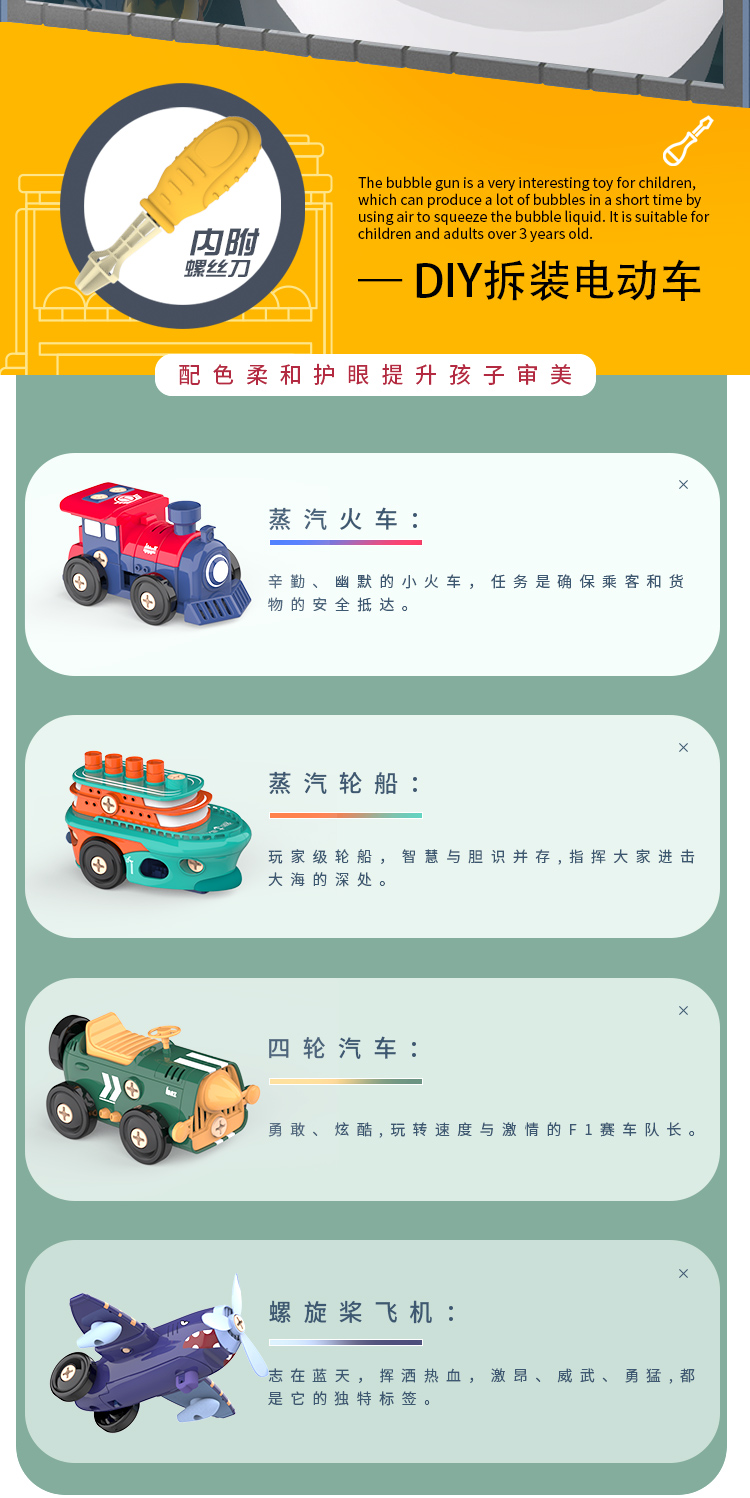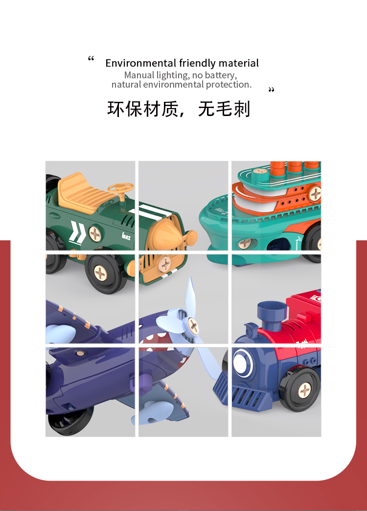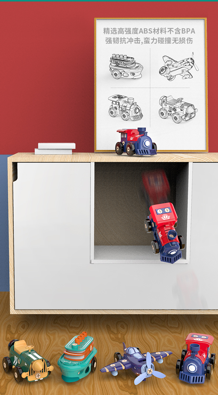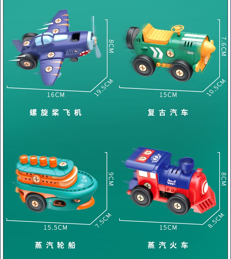 骏辉4只电动拼装复古车DP2203拼装玩具益智拆装仿真儿童拧螺丝智力开发