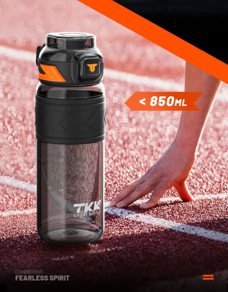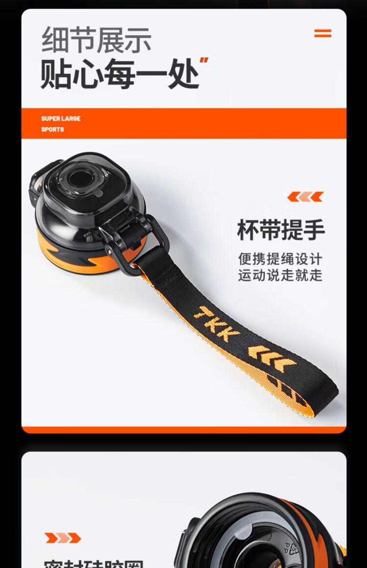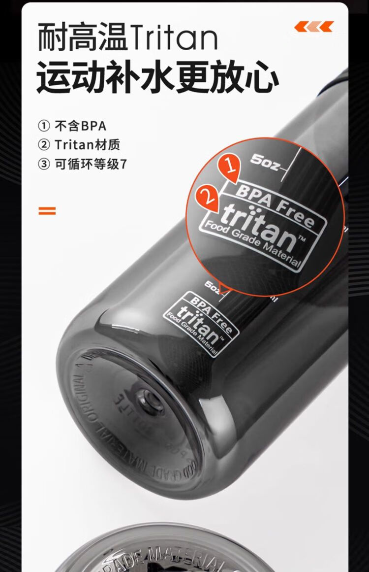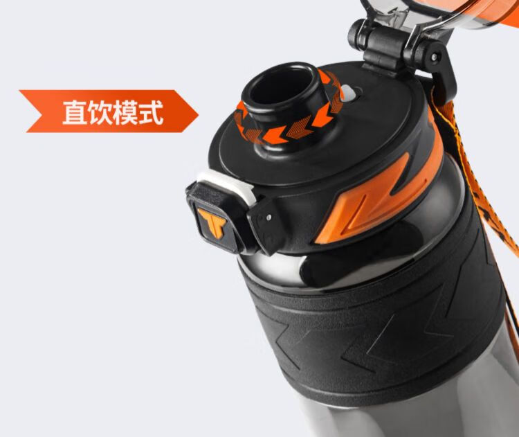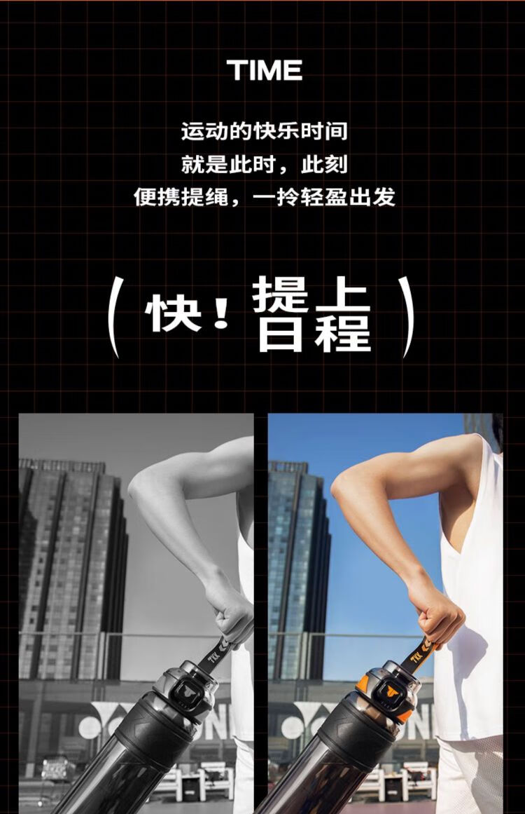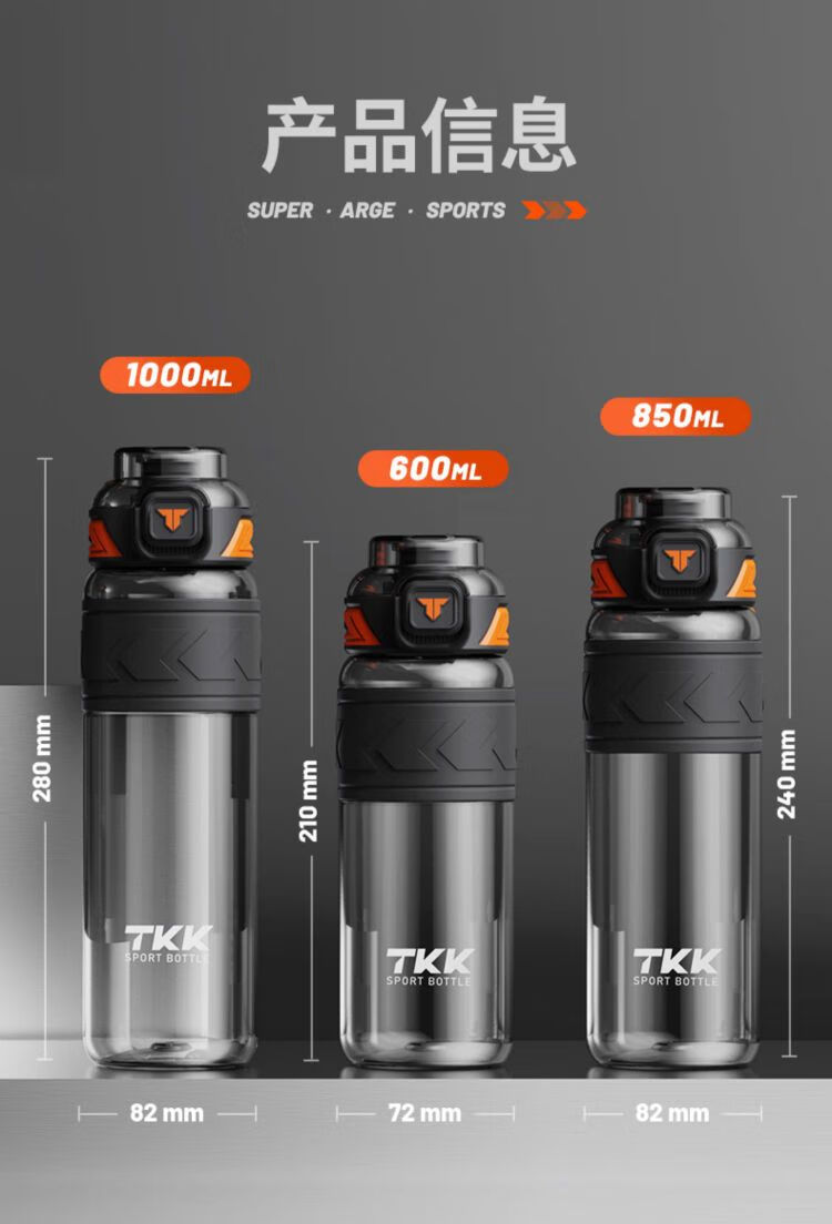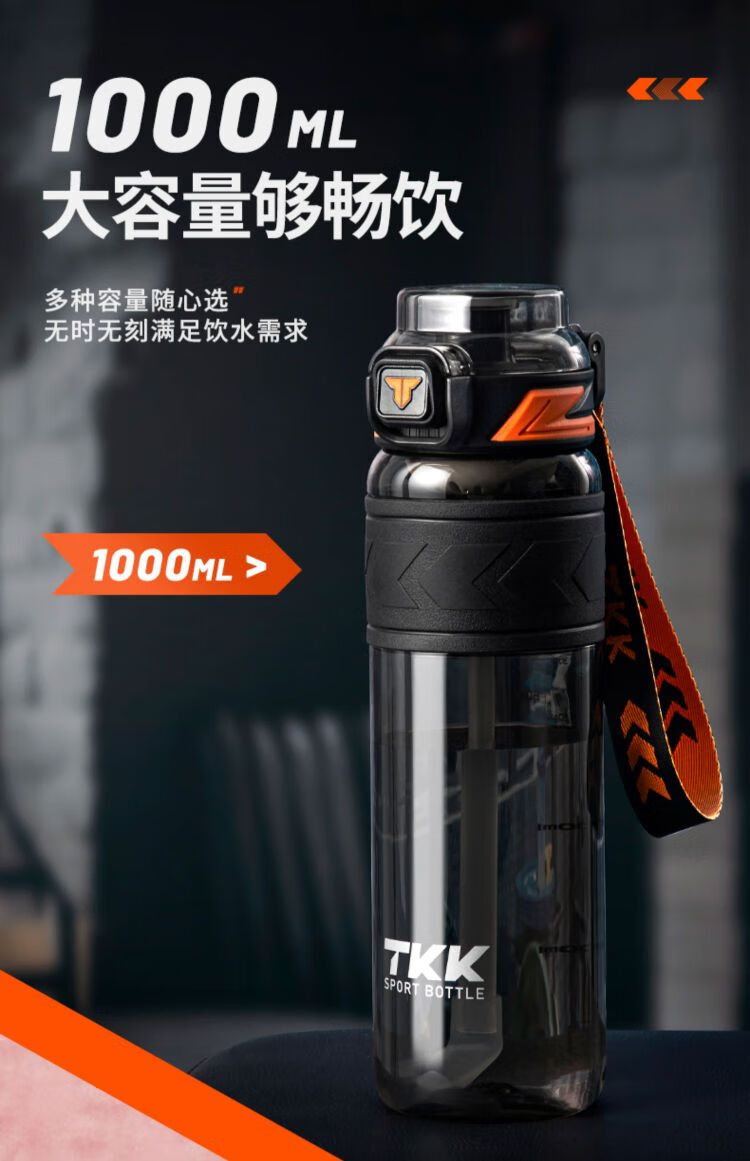 TKK运动水杯大容量男士女学生上学专用耐高温带吸管杯子夏季水壶600ML火山黑