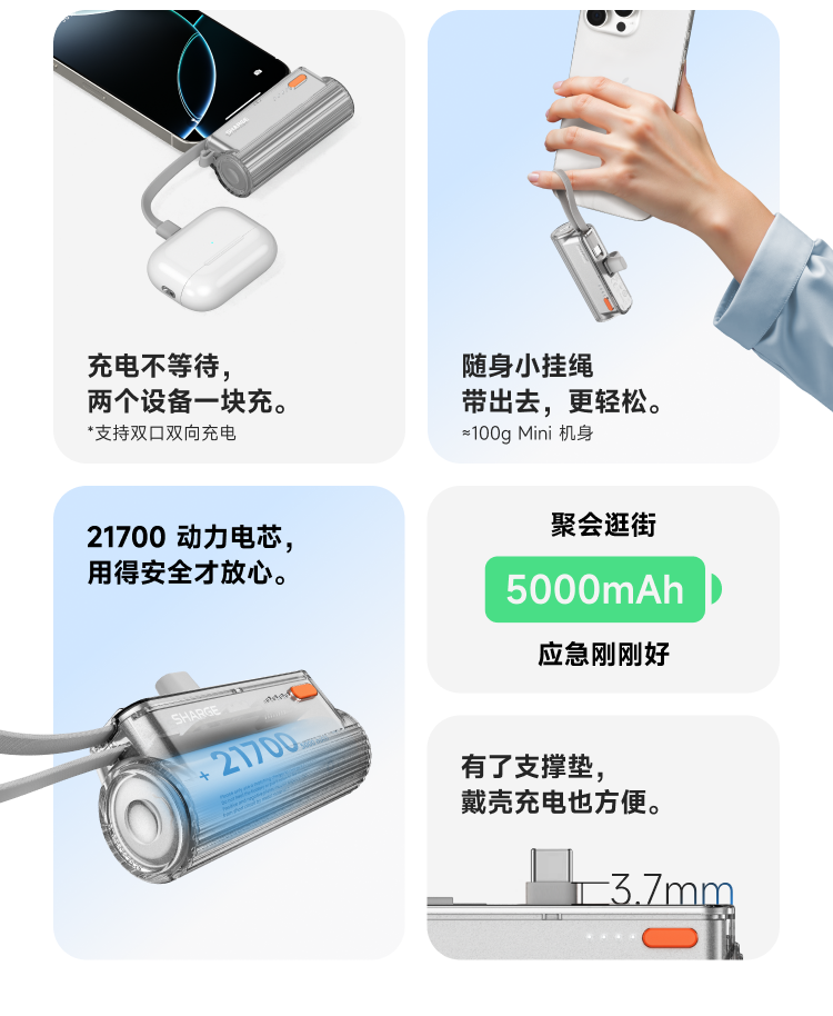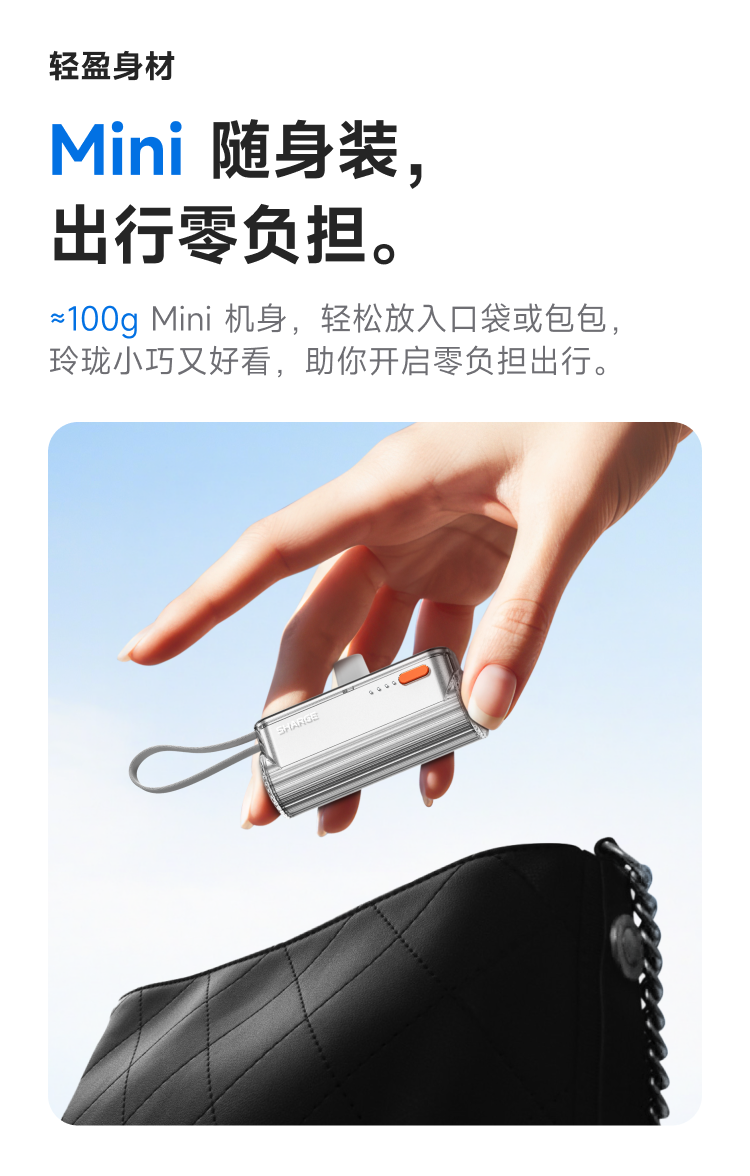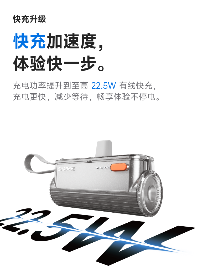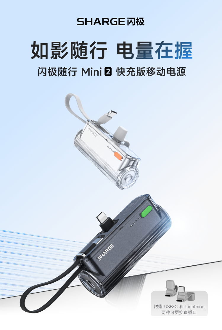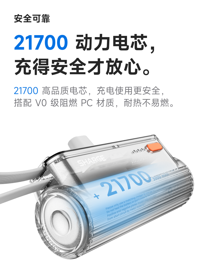 SHARGE/闪极 随行mini移动电源 5000mAh 适用于苹果17小米华为手机平板可带上飞机高铁