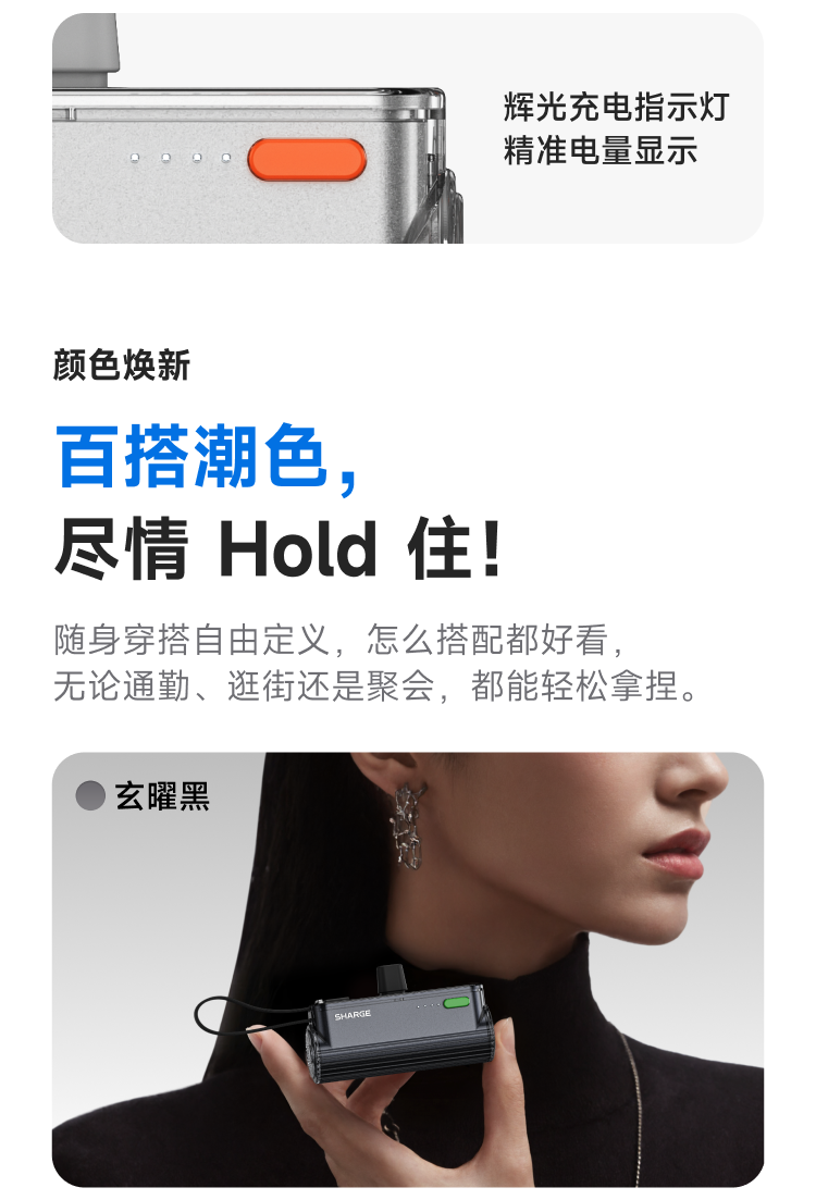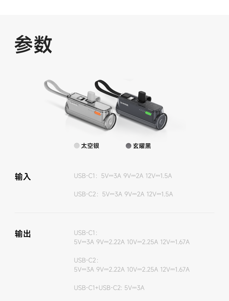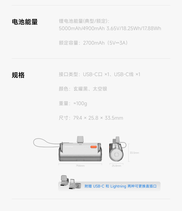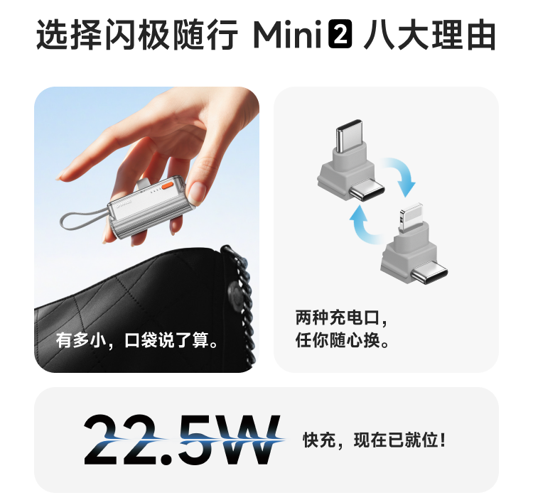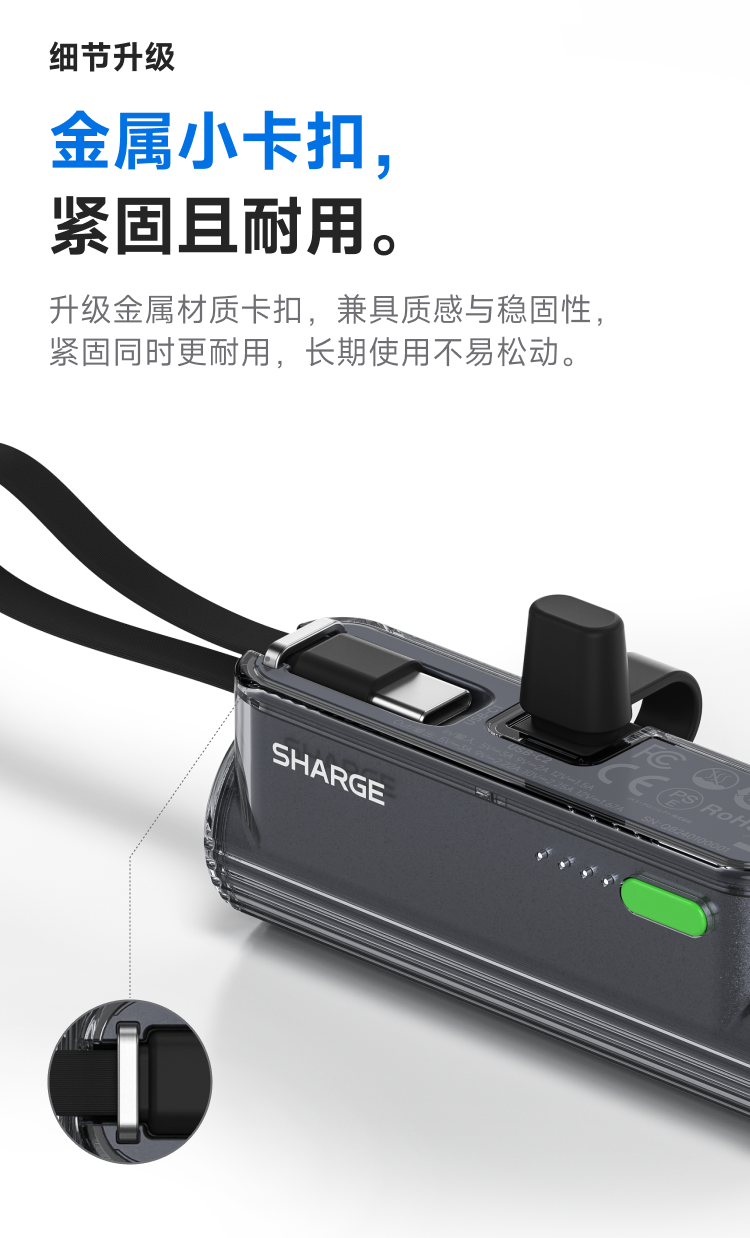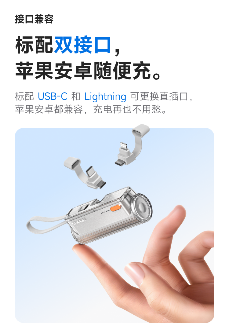 SHARGE/闪极 随行mini移动电源 5000mAh 适用于苹果17小米华为手机平板可带上飞机高铁