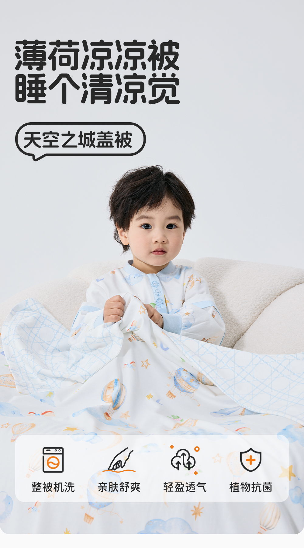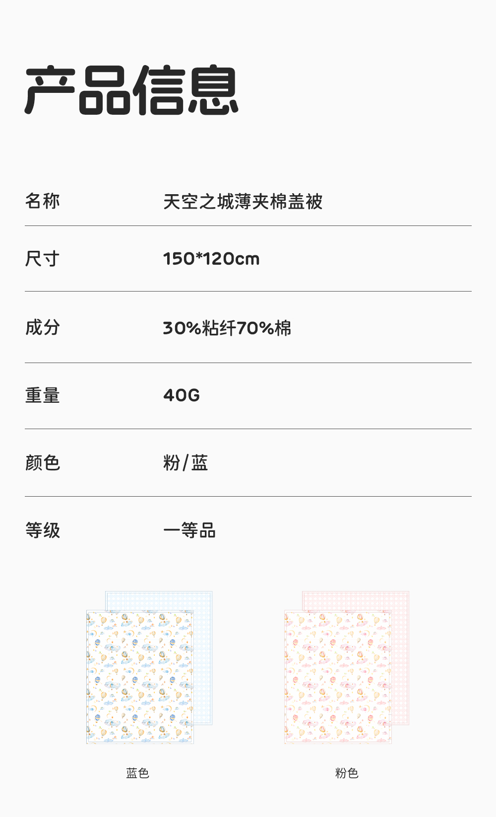 良良天空之城薄夹棉盖被|蓝色(150*120cm)40g