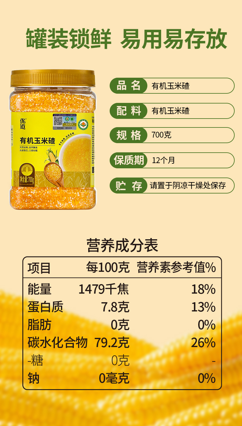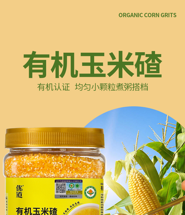 【武汉-蔡甸】优道有机玉米碴700g/700g*2