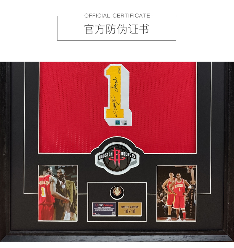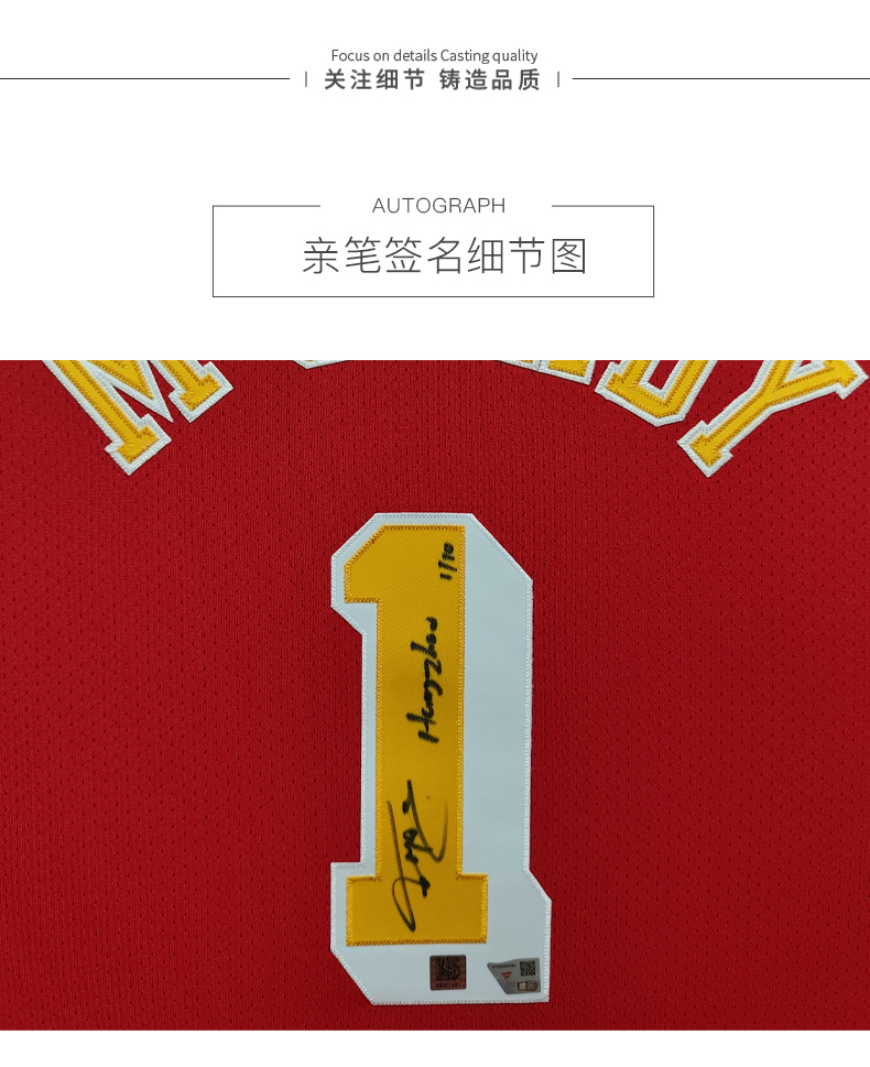 收藏系列 麦迪 “杭州”限量版 火箭队红色1号 亲笔签名球衣