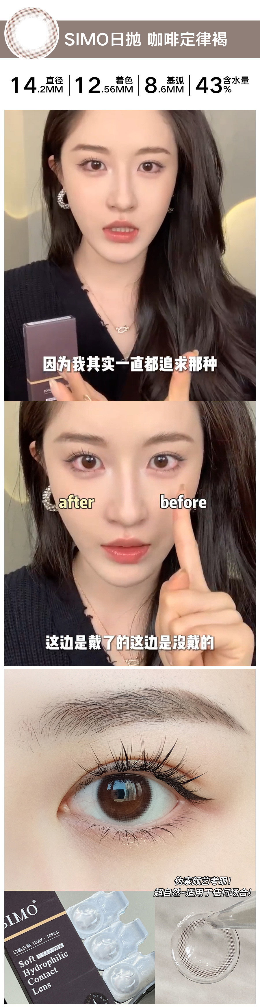 SIMO日抛爆款新品热卖款式 伪素颜神器 小直径自然款 新品上市 柚柚茶棕日抛版/三分心动系列 /咖啡定律/回吻夜色/半日甜/心跳次方/冷雾黑茶 1盒10片装