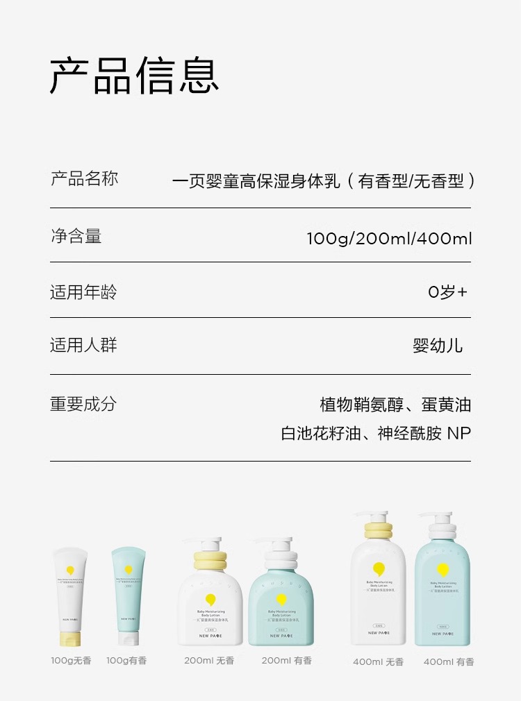 一页婴童高保湿身体乳(有香型)100g保湿滋润婴儿润肤乳