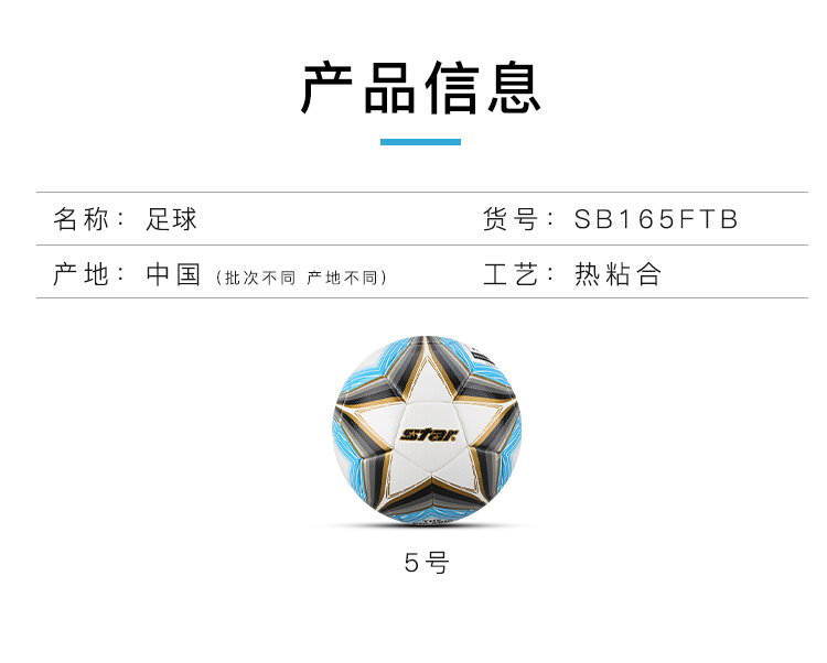 小李子STAR世达PU热粘合技术工艺运动训练5号足球成人男SB165FTB