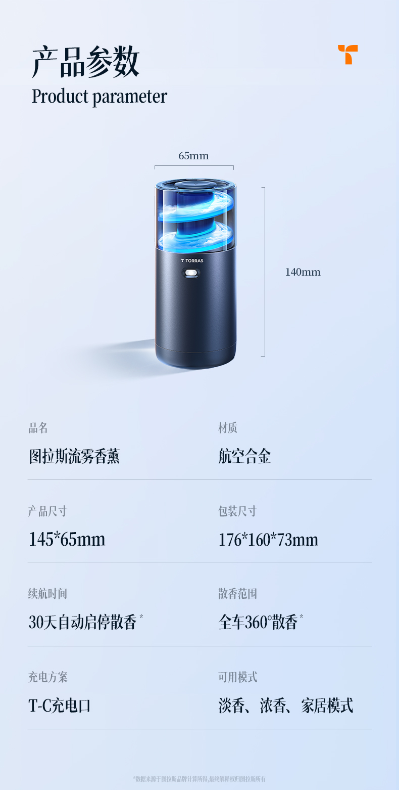 TORRAS/图拉斯 CF18旋转流雾车载香薰 汽车香水车内用香氛持久留香新款男士专用固体 下单后三天发货
