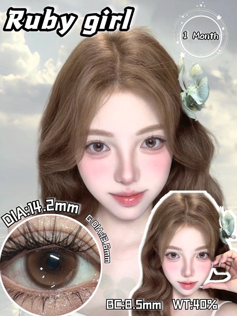 Ruby girl 冰橘琥珀 月抛 两片 14.2mm 参考着色 13.6mm 基弧 8.5 含水 40% 新锐国货
