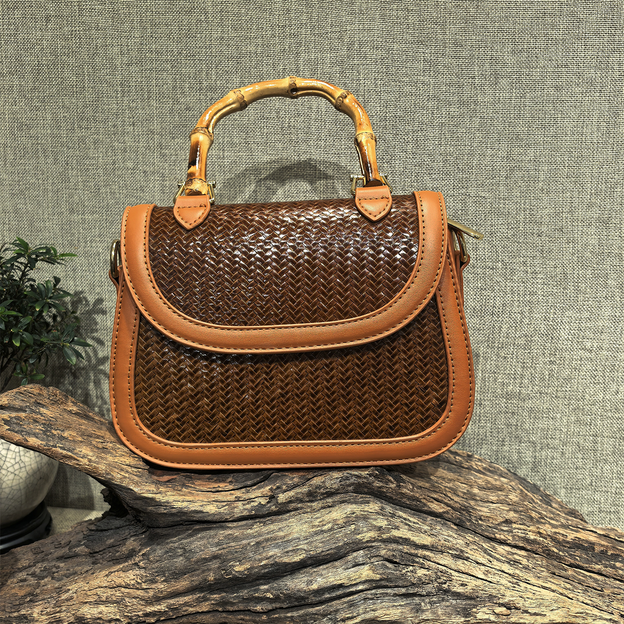 精编竹根手拎包