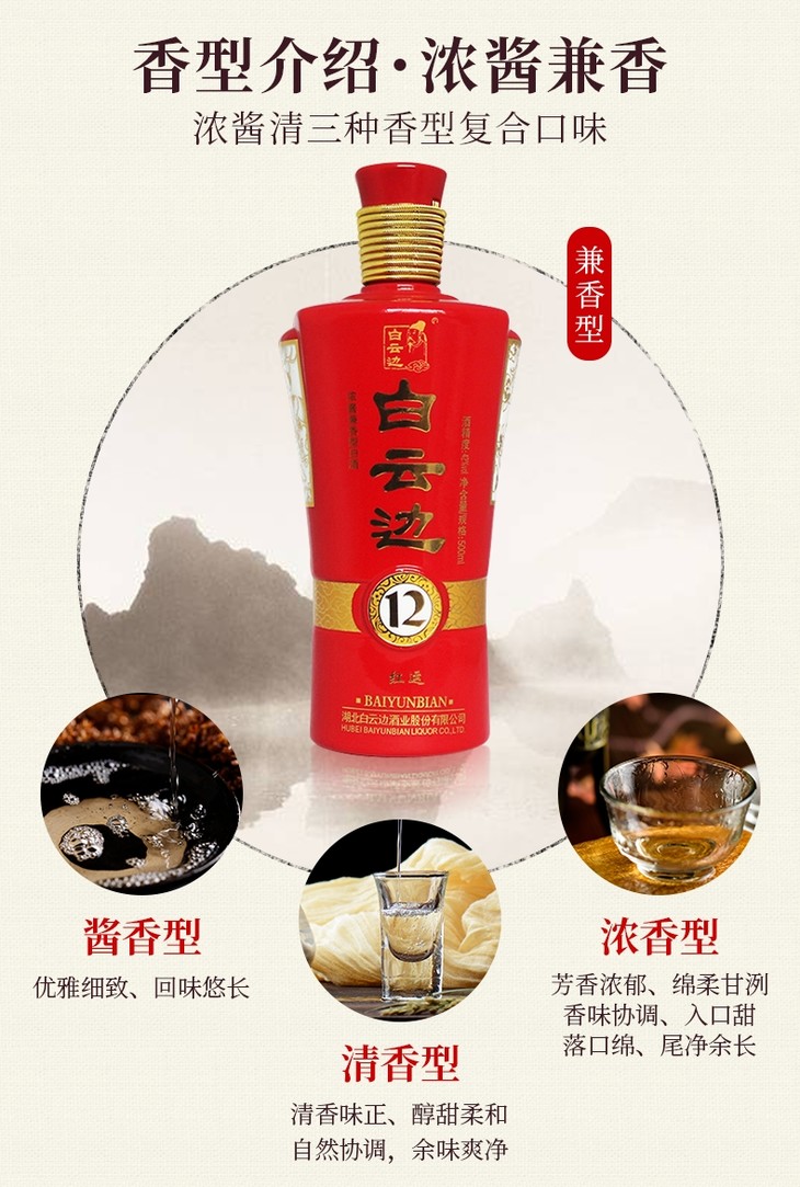 白云边12年陈酿500ml*6瓶 整箱包邮 42度国产名酒 兼香典范